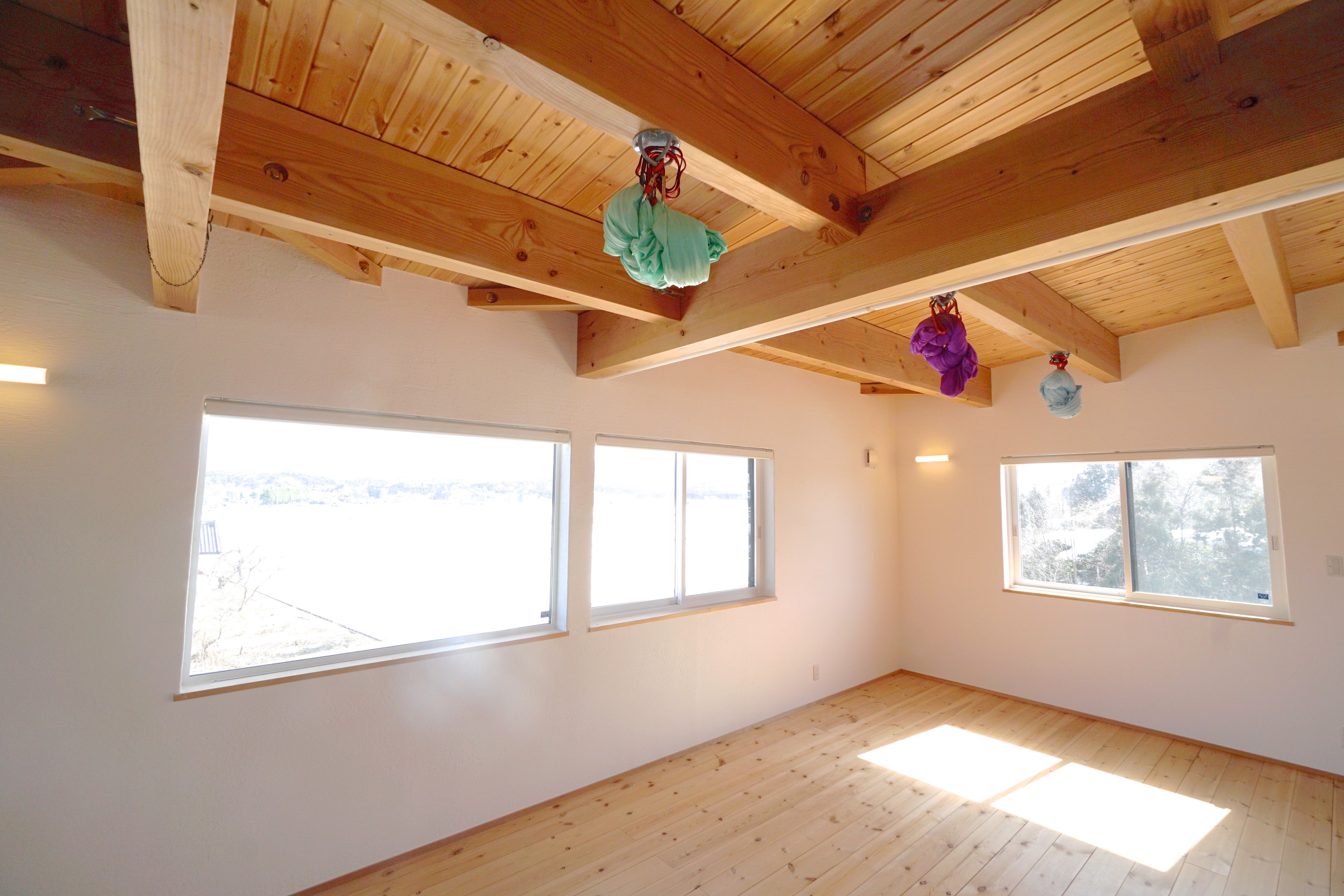 こちらのお家は、天井が漆喰ではなく、無垢材なので