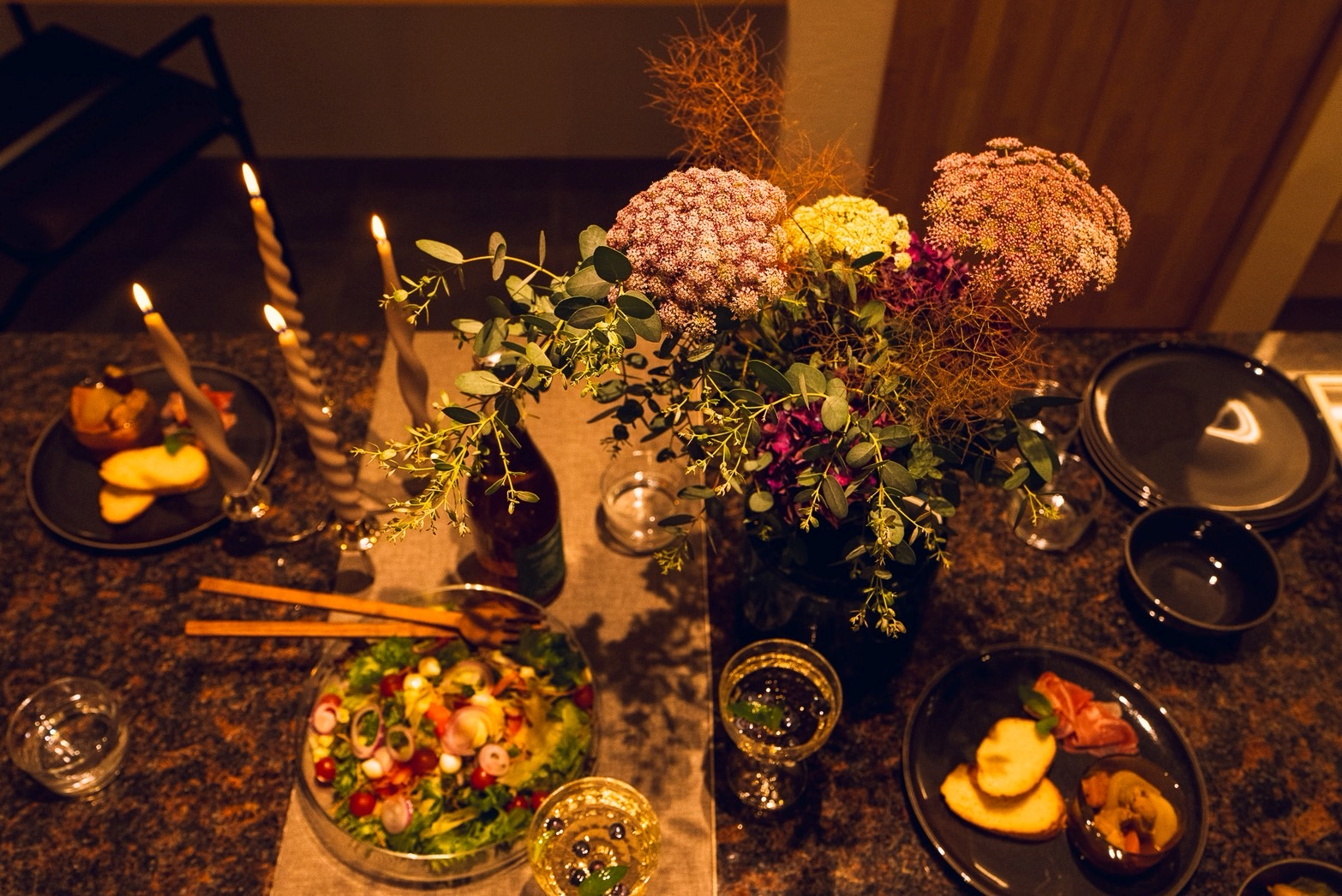 漆喰と無垢材に調和して、とっても素敵ですね。