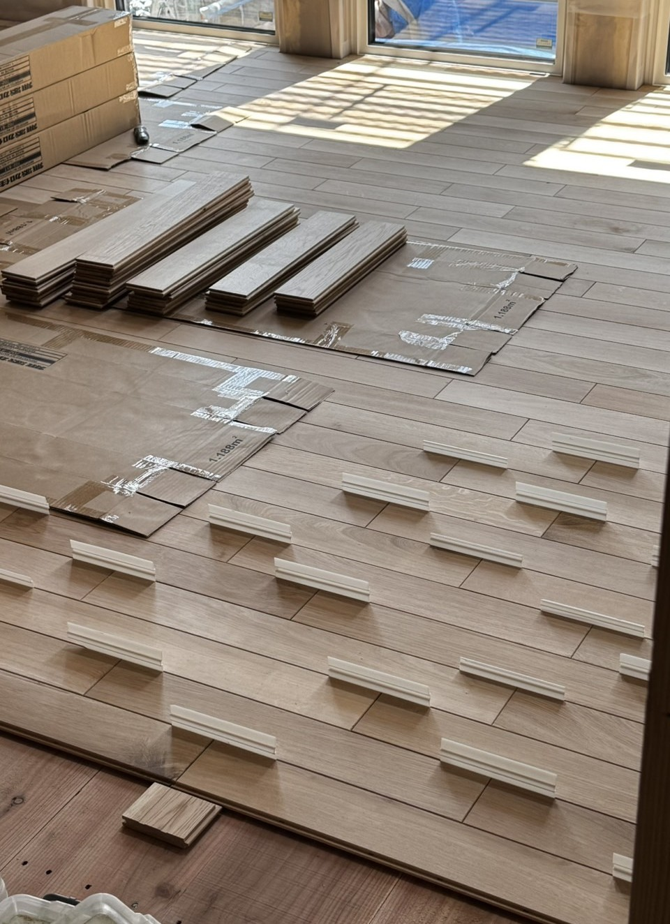 これは床板貼り付け作業の途中経過です!