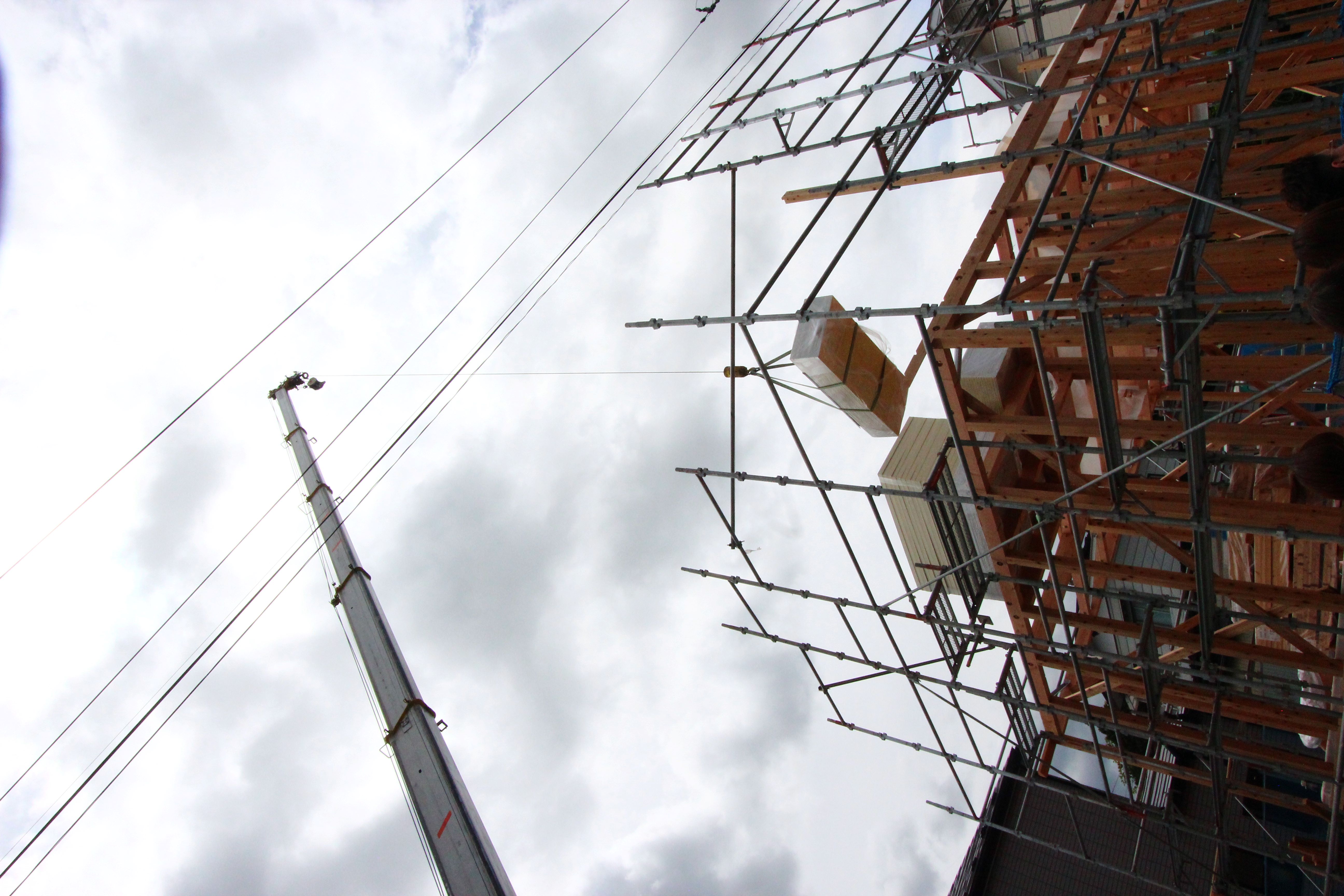 こちらはクレーンで材料を2階部分に移動している様子です。
