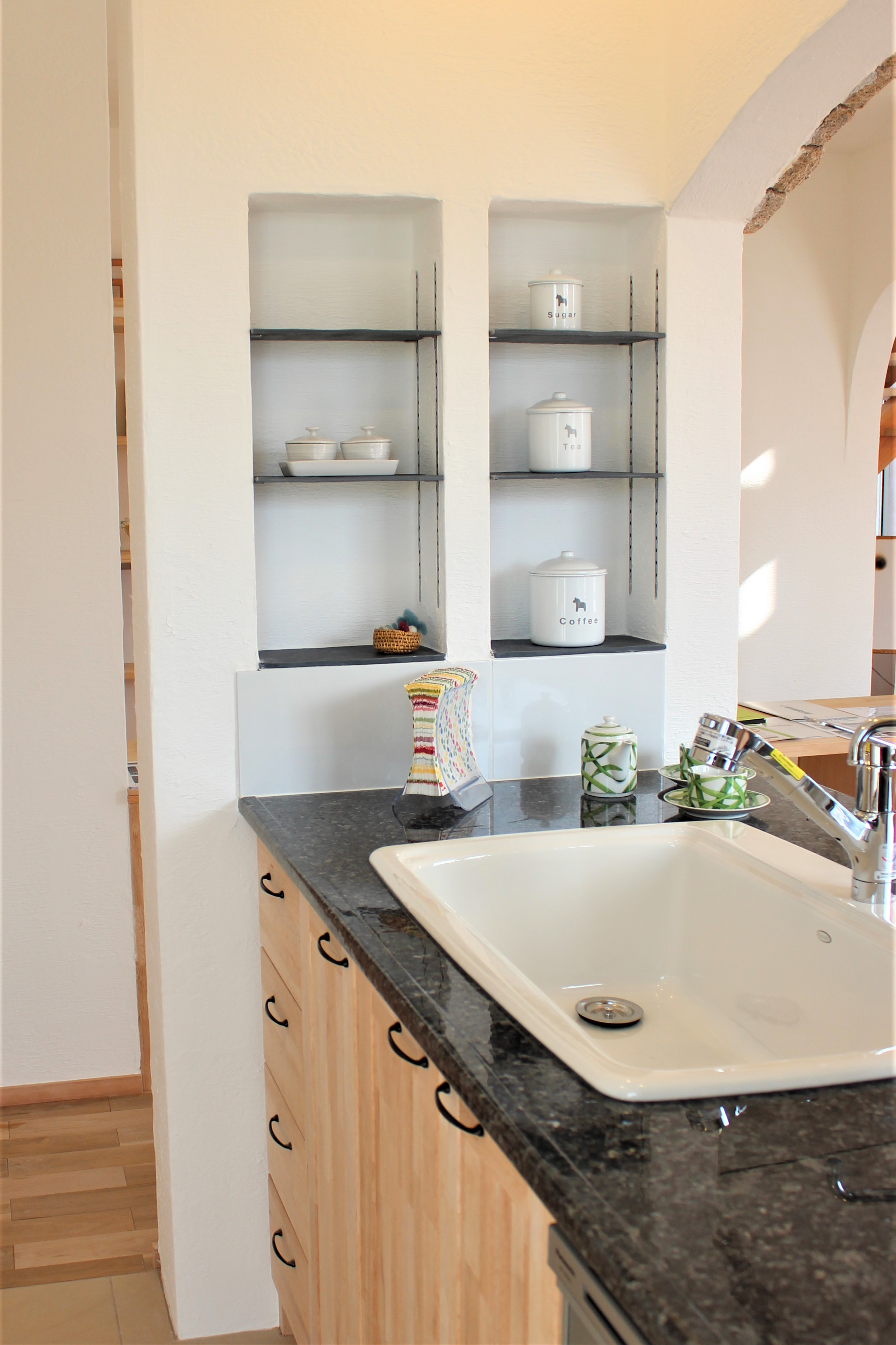 なかでも、しっくい壁だからこそできるアール型のニッチはとても人気があります。