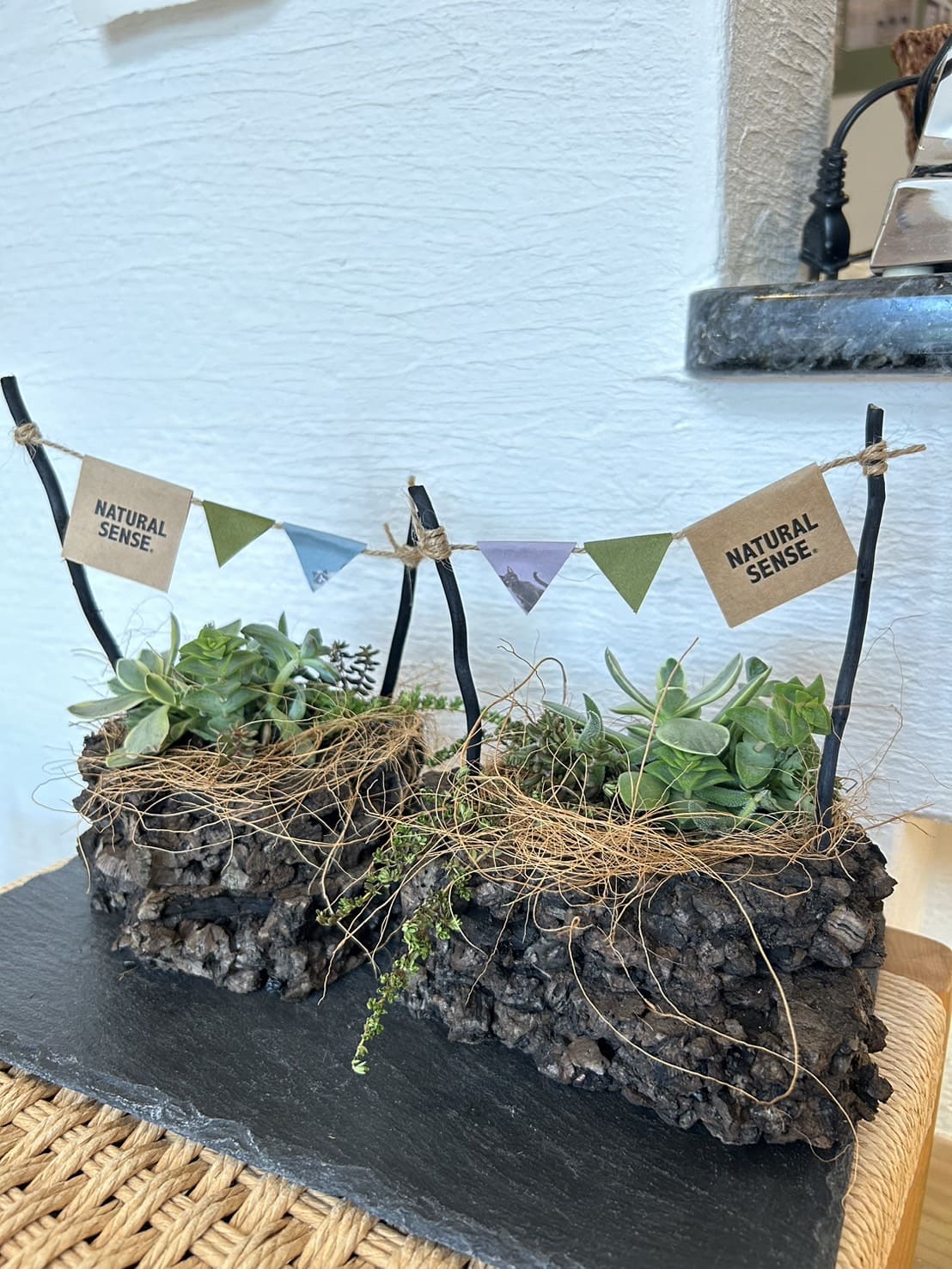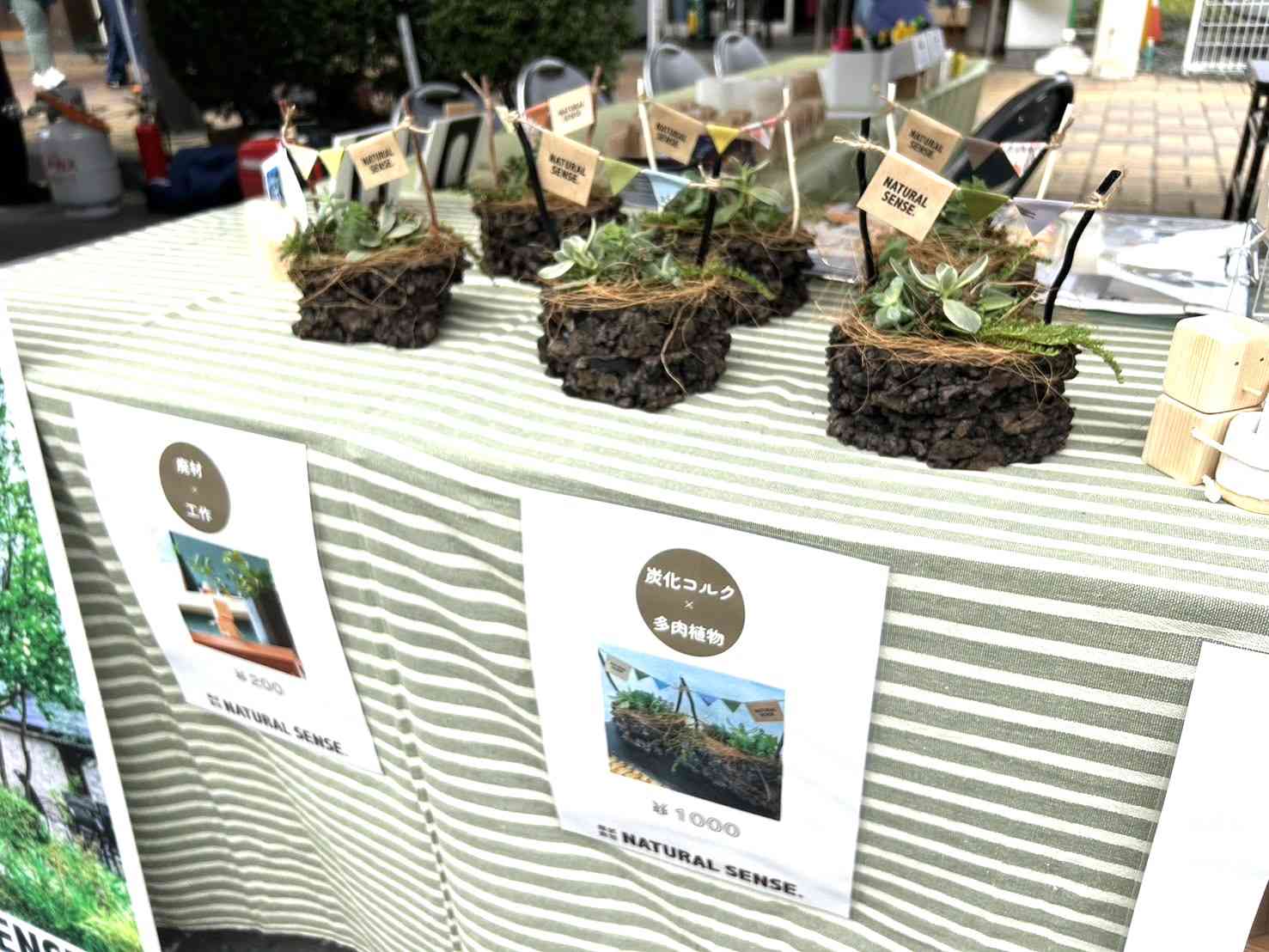 ▲断熱材(炭化コルク)に多肉植物を植えて販売しました