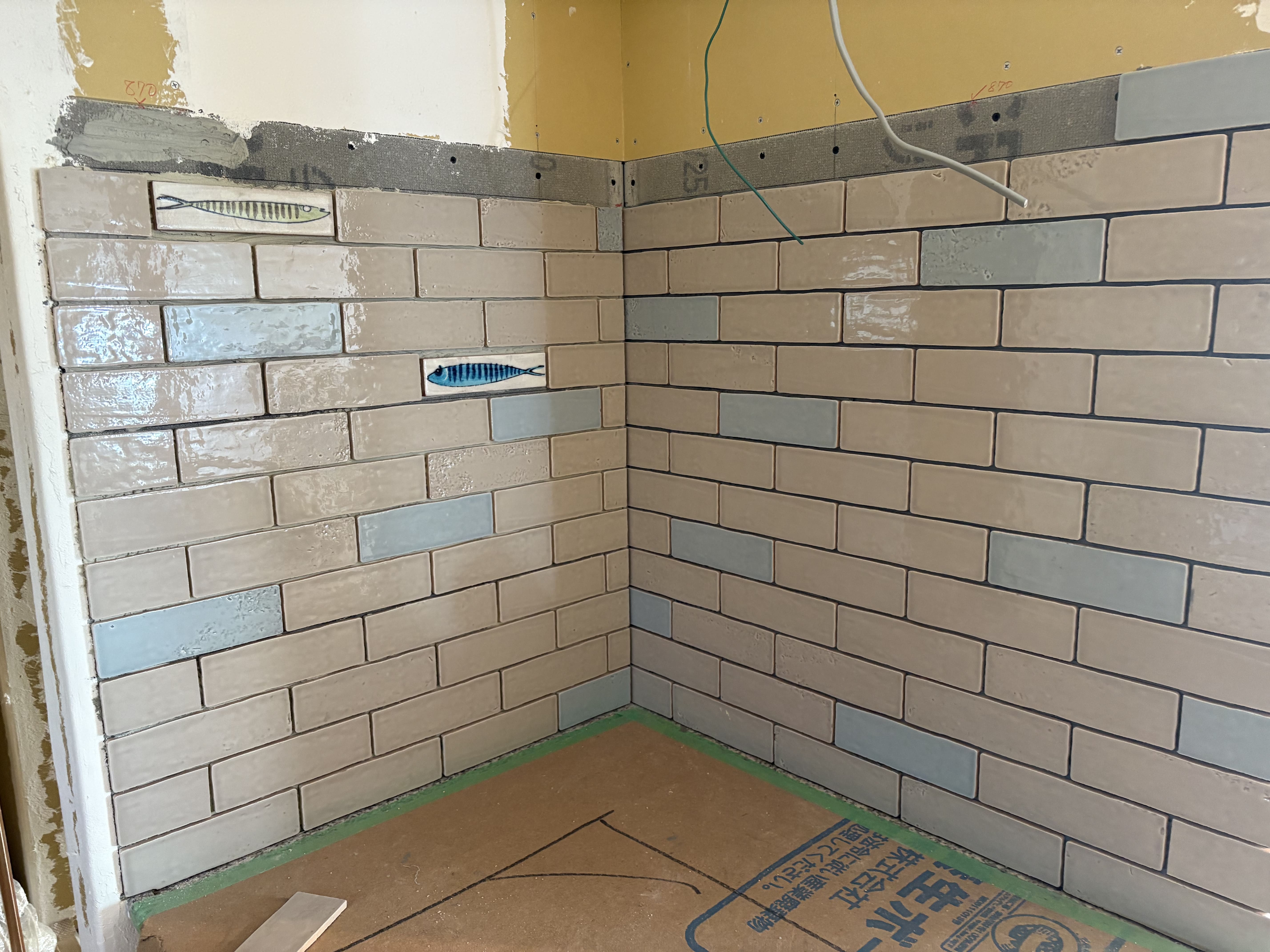 湿度が100%近い中漆喰を塗ってくれている左官職人さんと