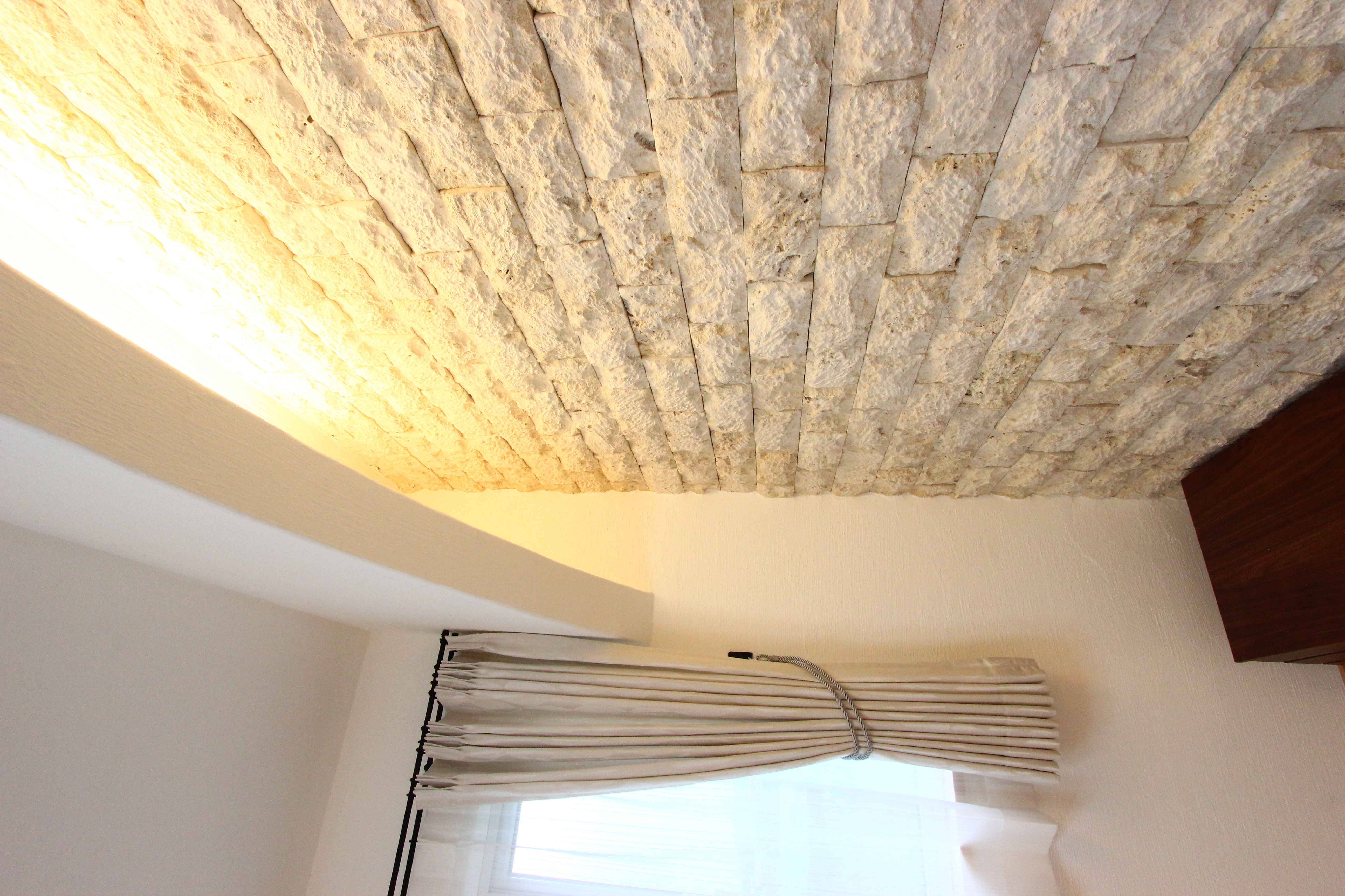漆喰・無垢材・天然石などの自然素材に囲まれたお部屋での