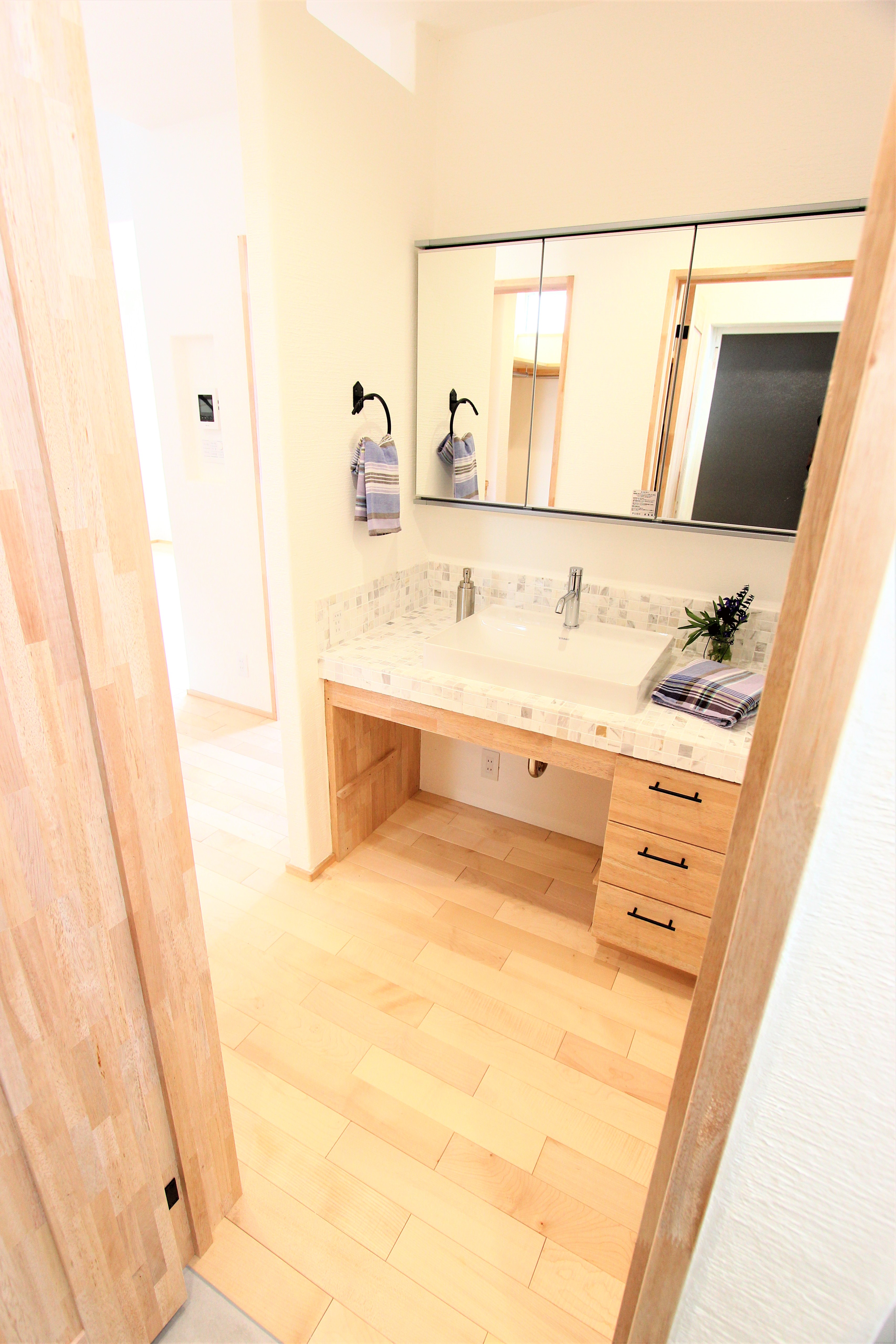 (株)NATURALSENSEの洗面台は御影石の天板やタイル、