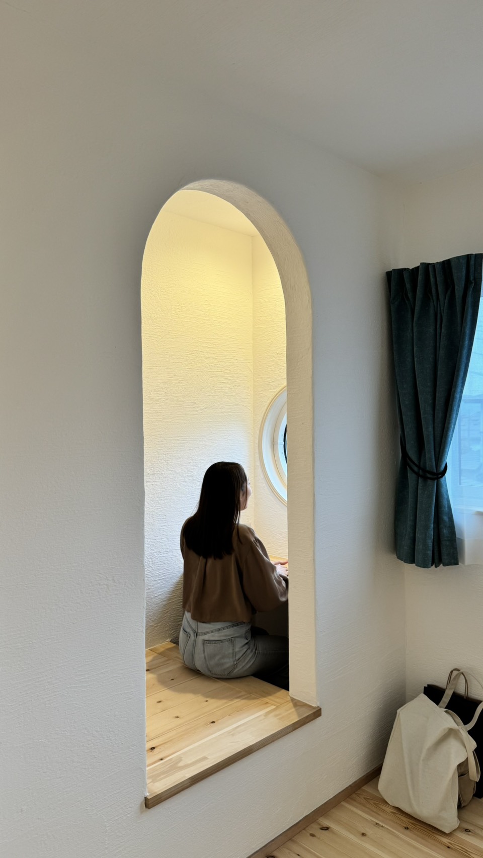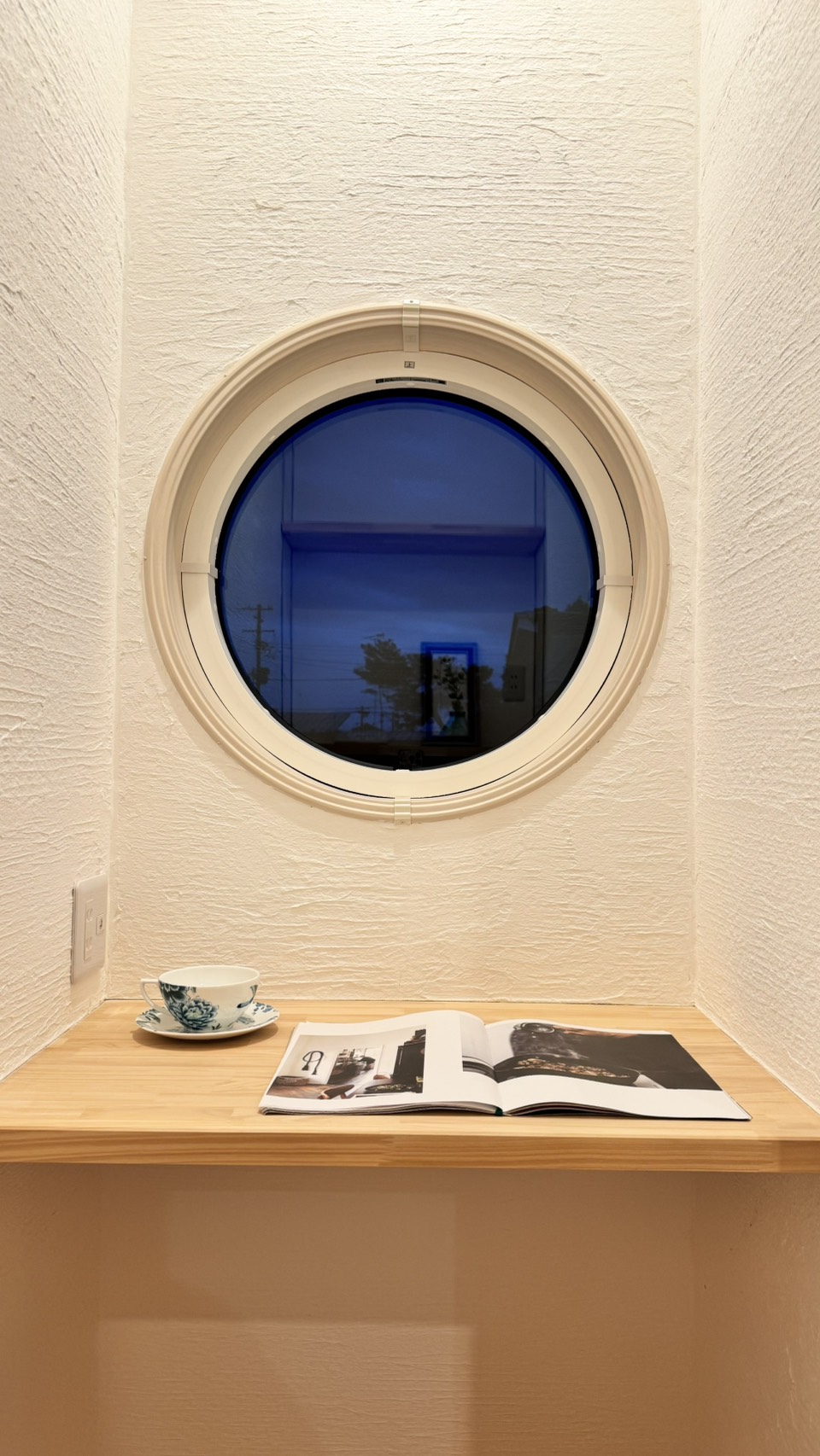 程よい高さのテーブル、そしてかわいい丸窓!