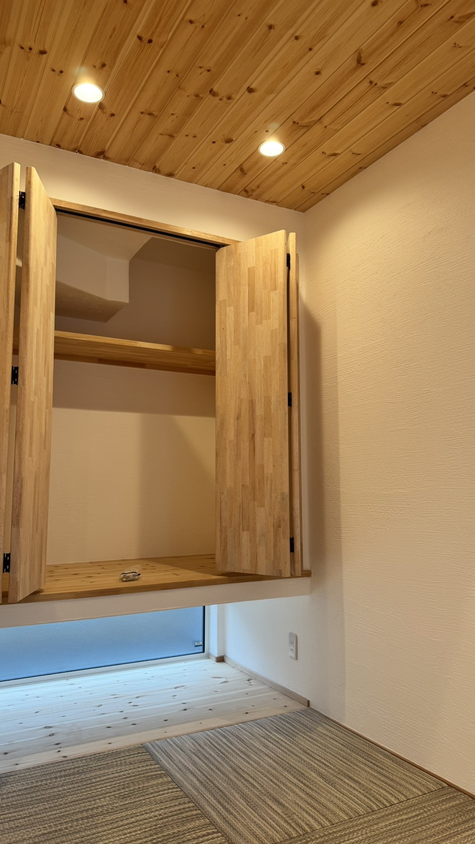 ちょっと柄の入った畳に無垢の押入れ