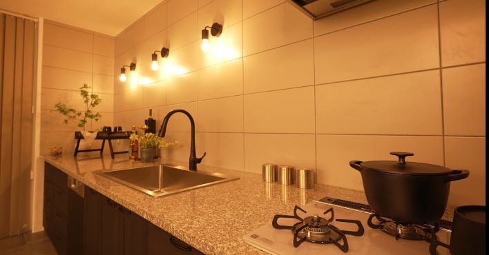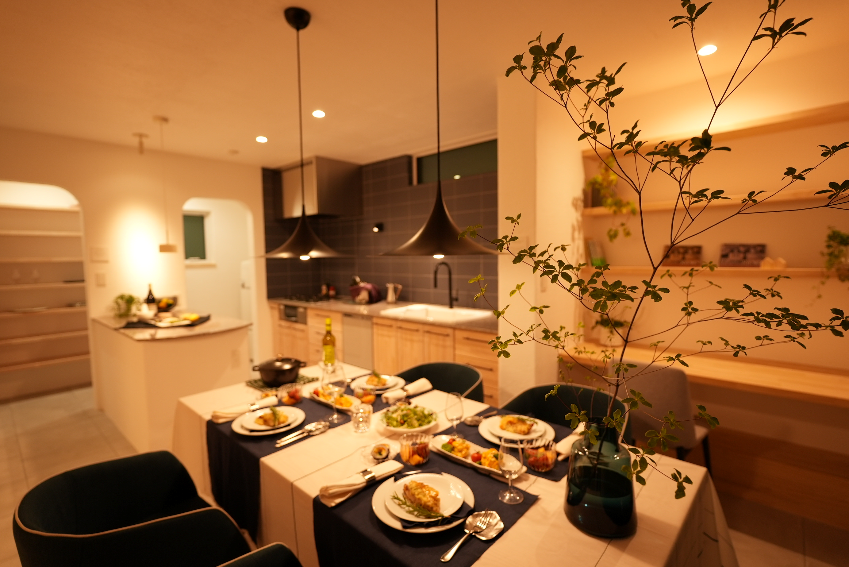 ↑こちらは、江刺八日町にあるモデルハウスの夜のキッチンです。