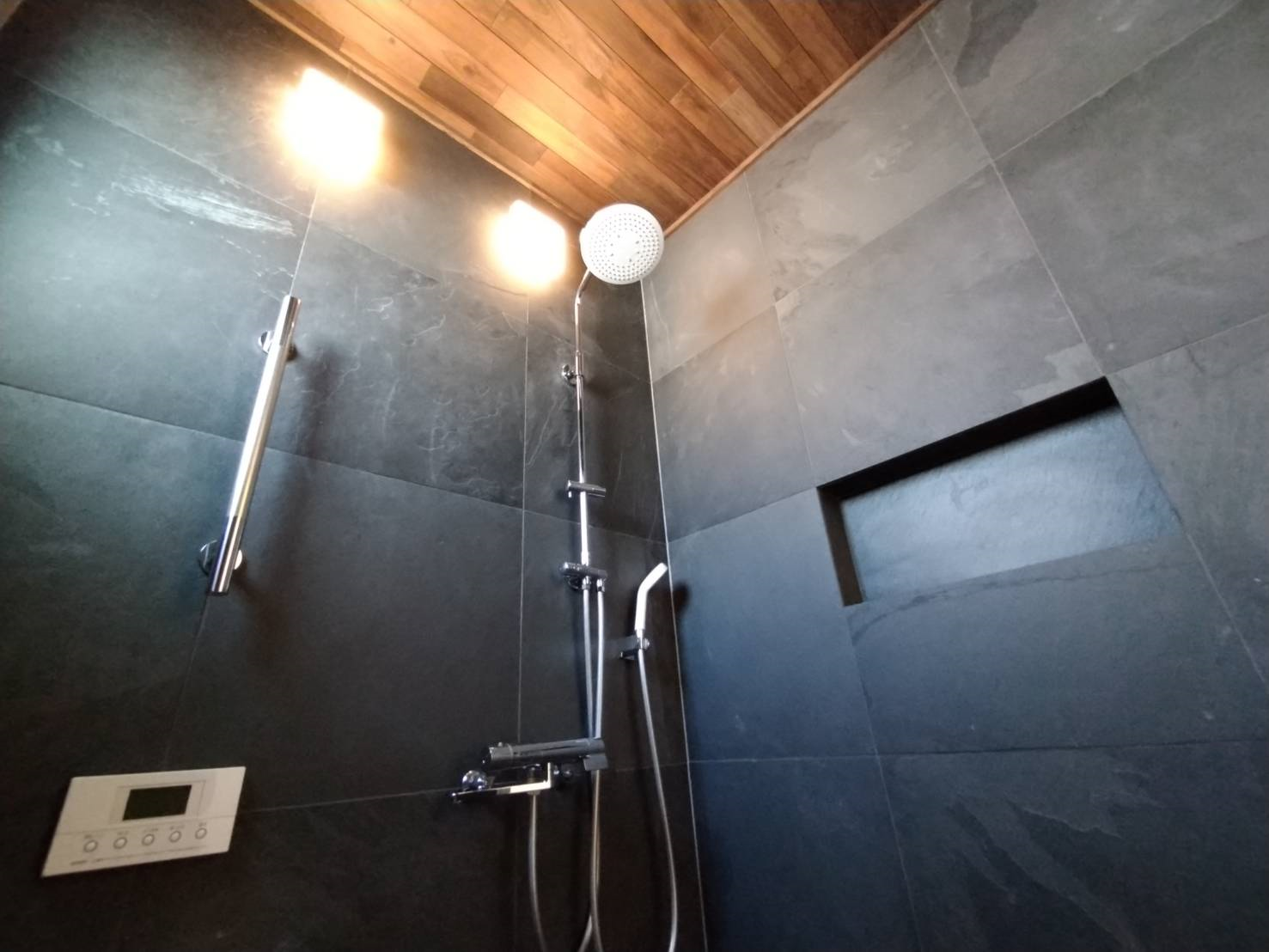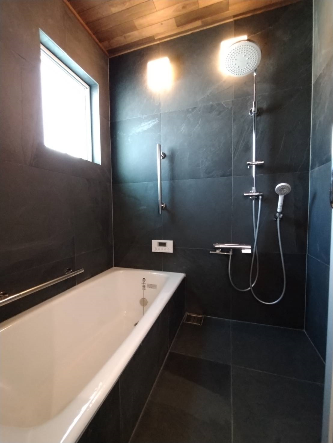 今回は、屋根材を壁に貼った在来浴室が大人気!