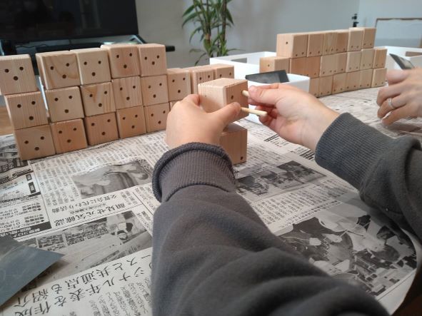 サイズもさまざまな端材は、貴重な無垢材たちです。