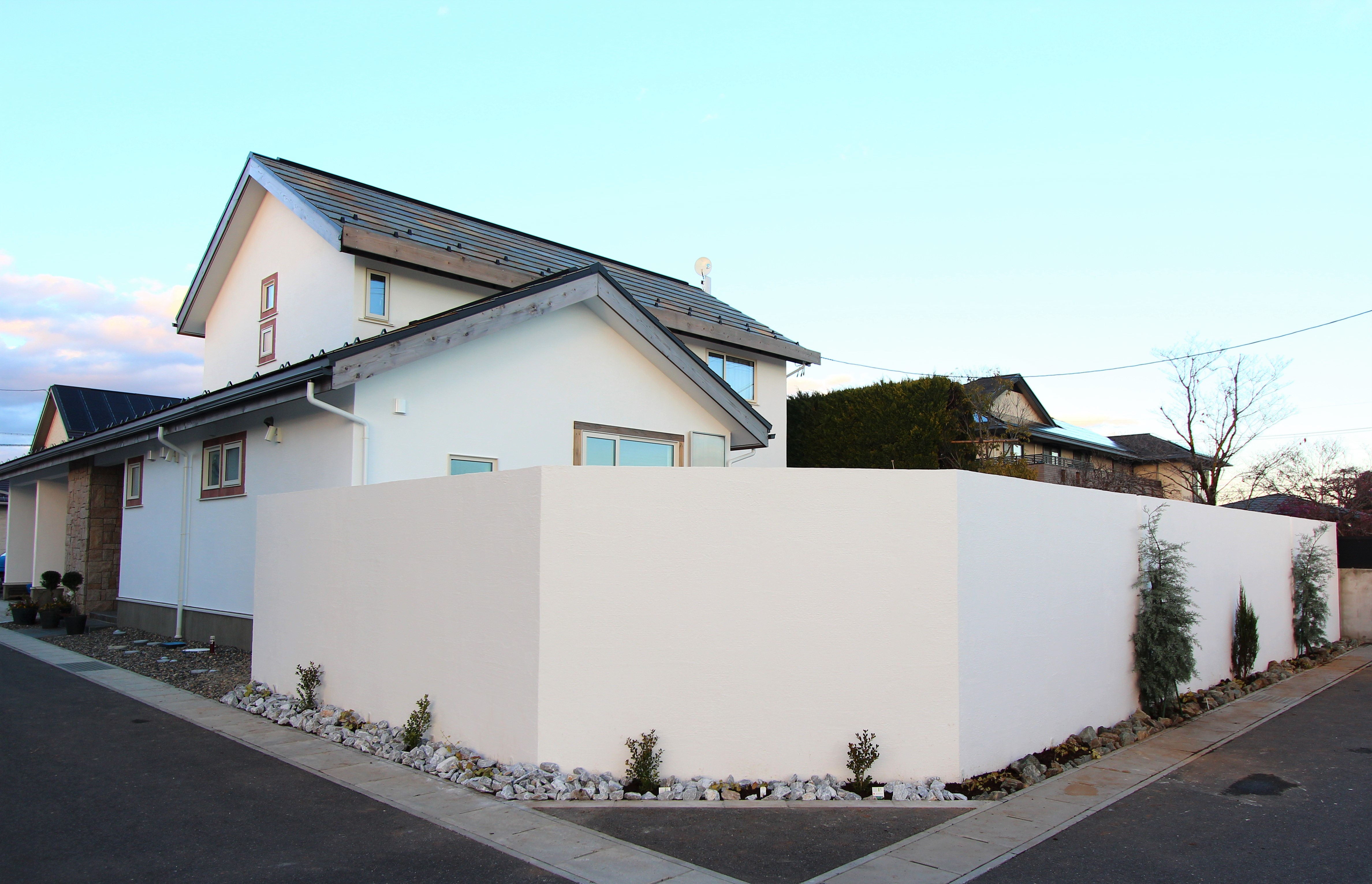 塀も漆喰にすることで、清潔感のあるまとまった印象となります。