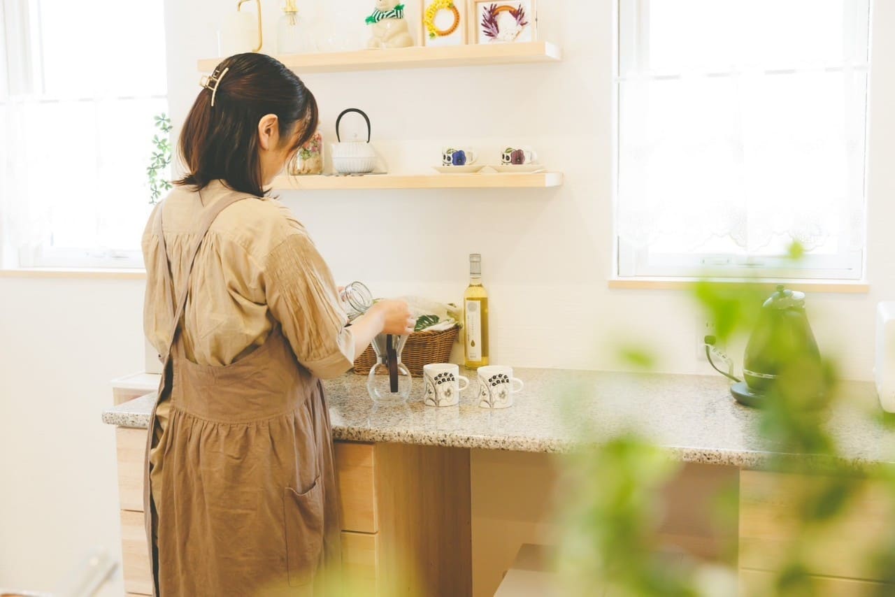 無添加住宅の天然石キッチンは、