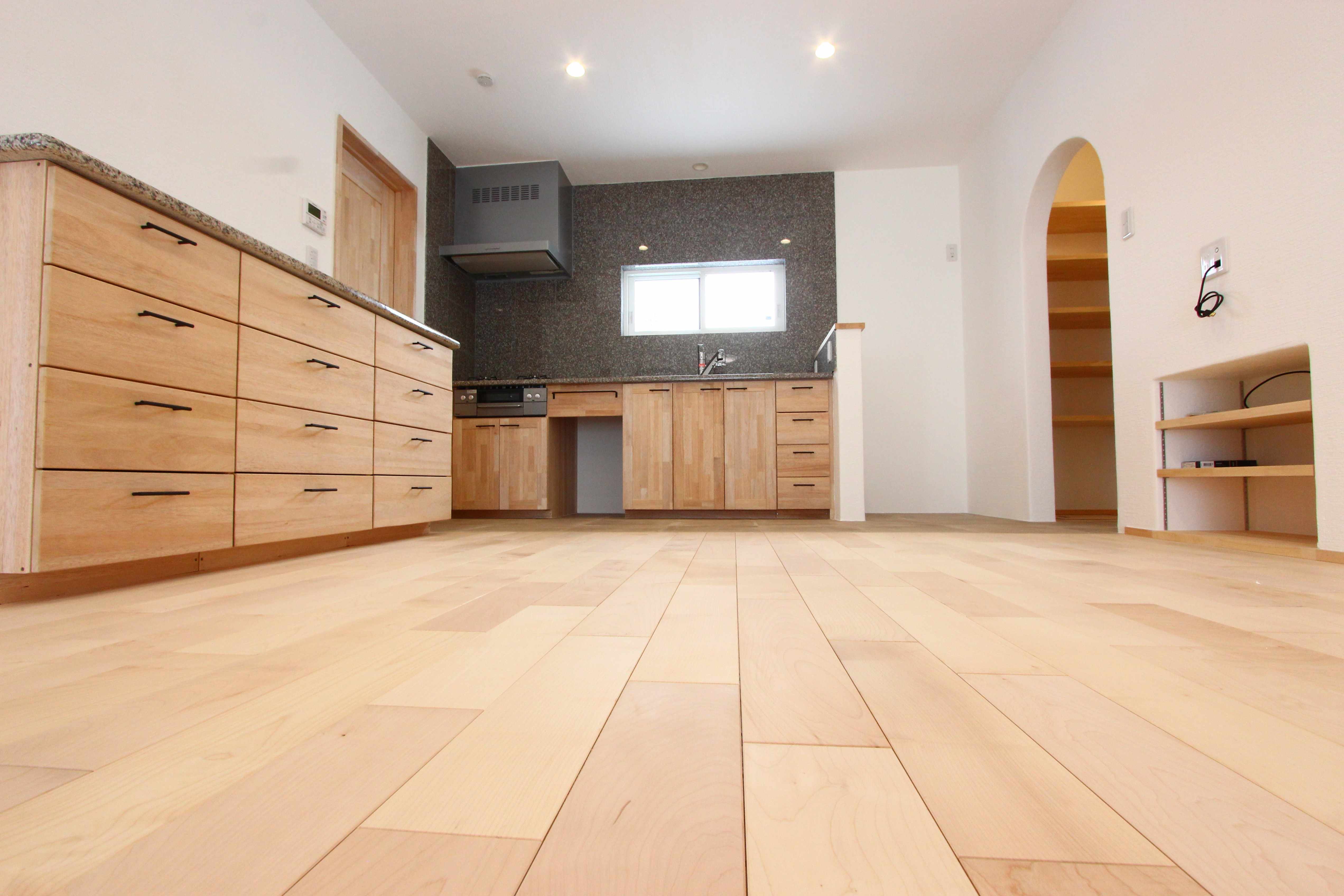 気持ち良い無垢材の床は木の真珠と呼ばれるメイプル材です。