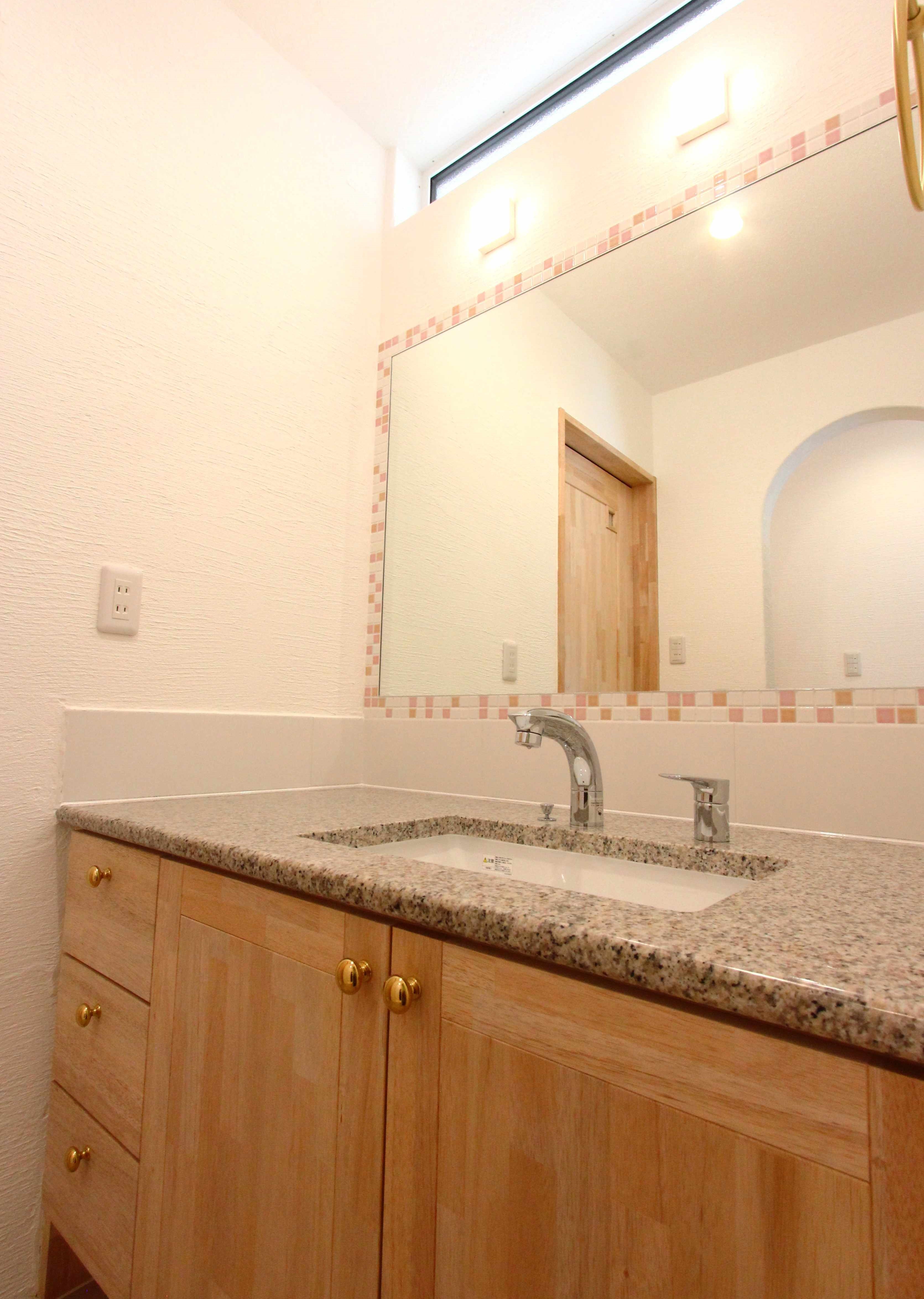 優しい色合いの洗面台は娘さんの意見も取り入れました。