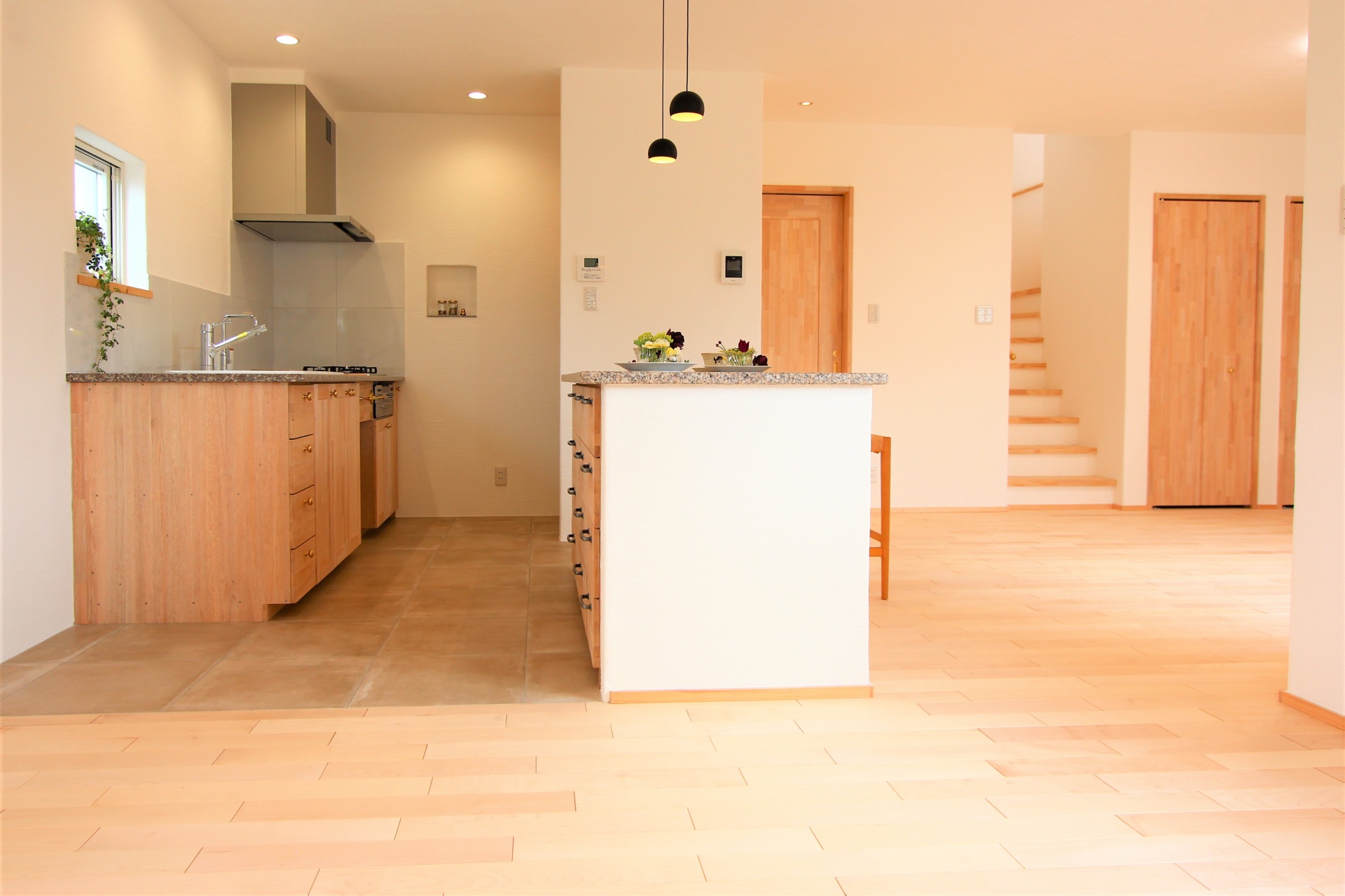 おはようから始まる日常の中で、家族が顔を合わせてご飯をいただく日々の幸せな風景。美しい白色の楓の樹の床材は素足にしっとりと優しく、太陽の光を取り込んでさらに優しさを増していきます。四季の変化を感じながらの暮らし。ここから始まった毎日が心地よく、安らぎに満ちた日々であることがごく当然であるように、天然素材の家はご家族を包み込んでいます。