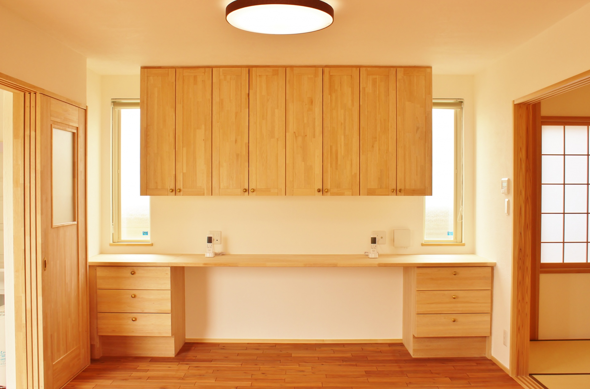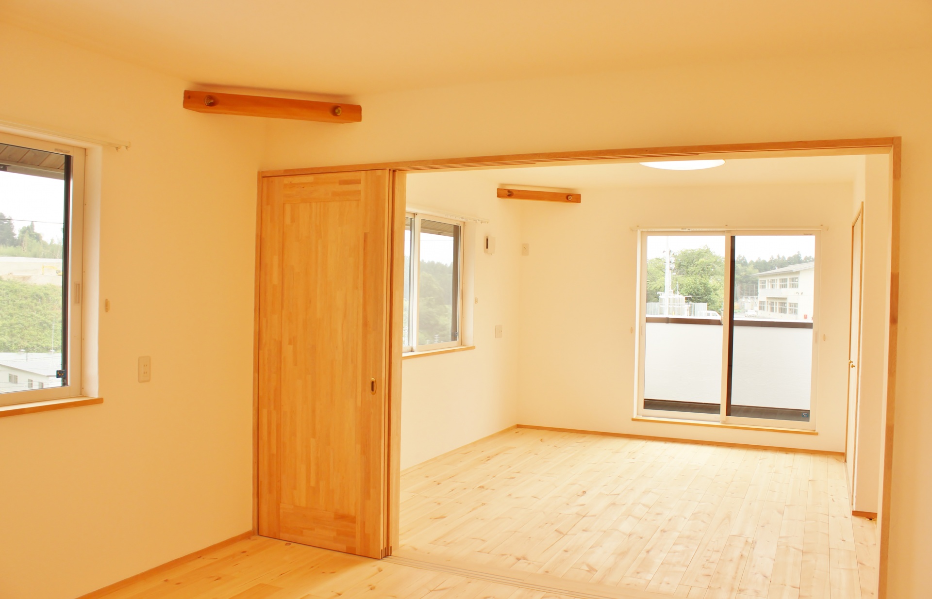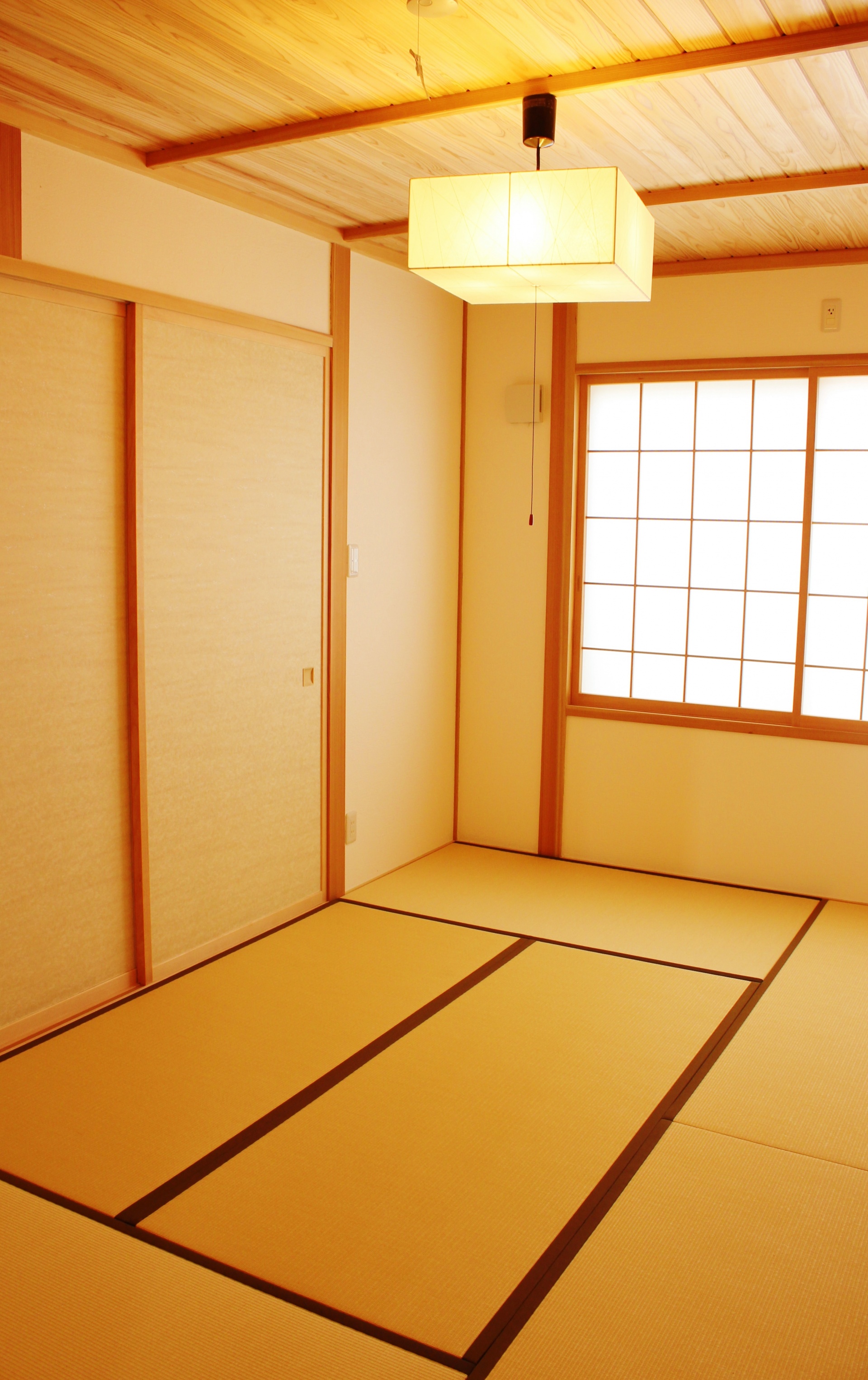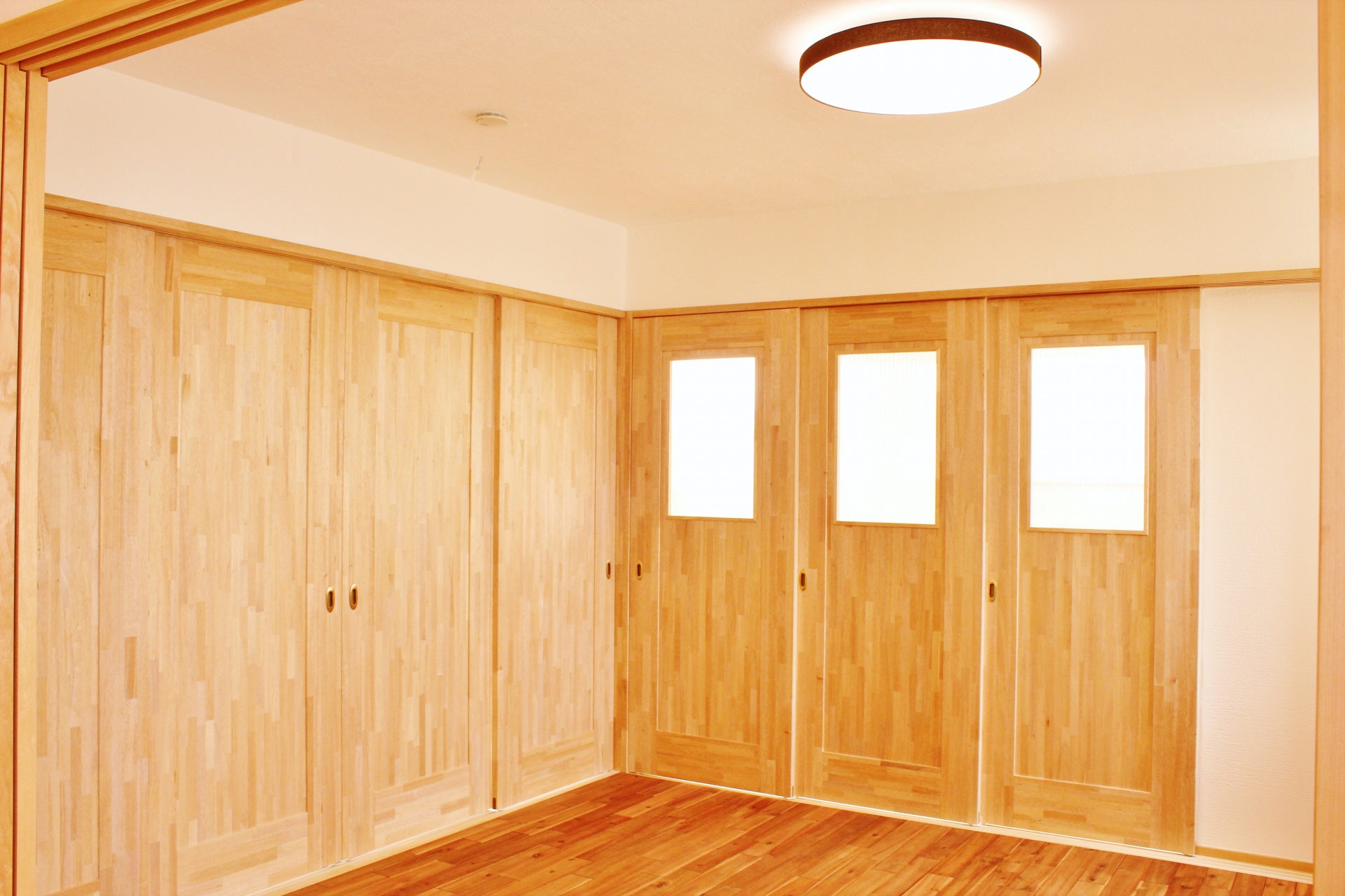 H様邸は、ご夫婦お二人で、ゆったりとした時間を過ごせる家をお建てになりました。〝くつろぎ〟にこだわったH様邸は、和室も真壁造りで本格和室に仕上げました。和室からご夫婦のプライベートルームへつながります。襖3枚を引き込めるので、開口部が大きく奥行のある空間です。ご気分によって、洋室でも、和室でもくつろぎを選べます。