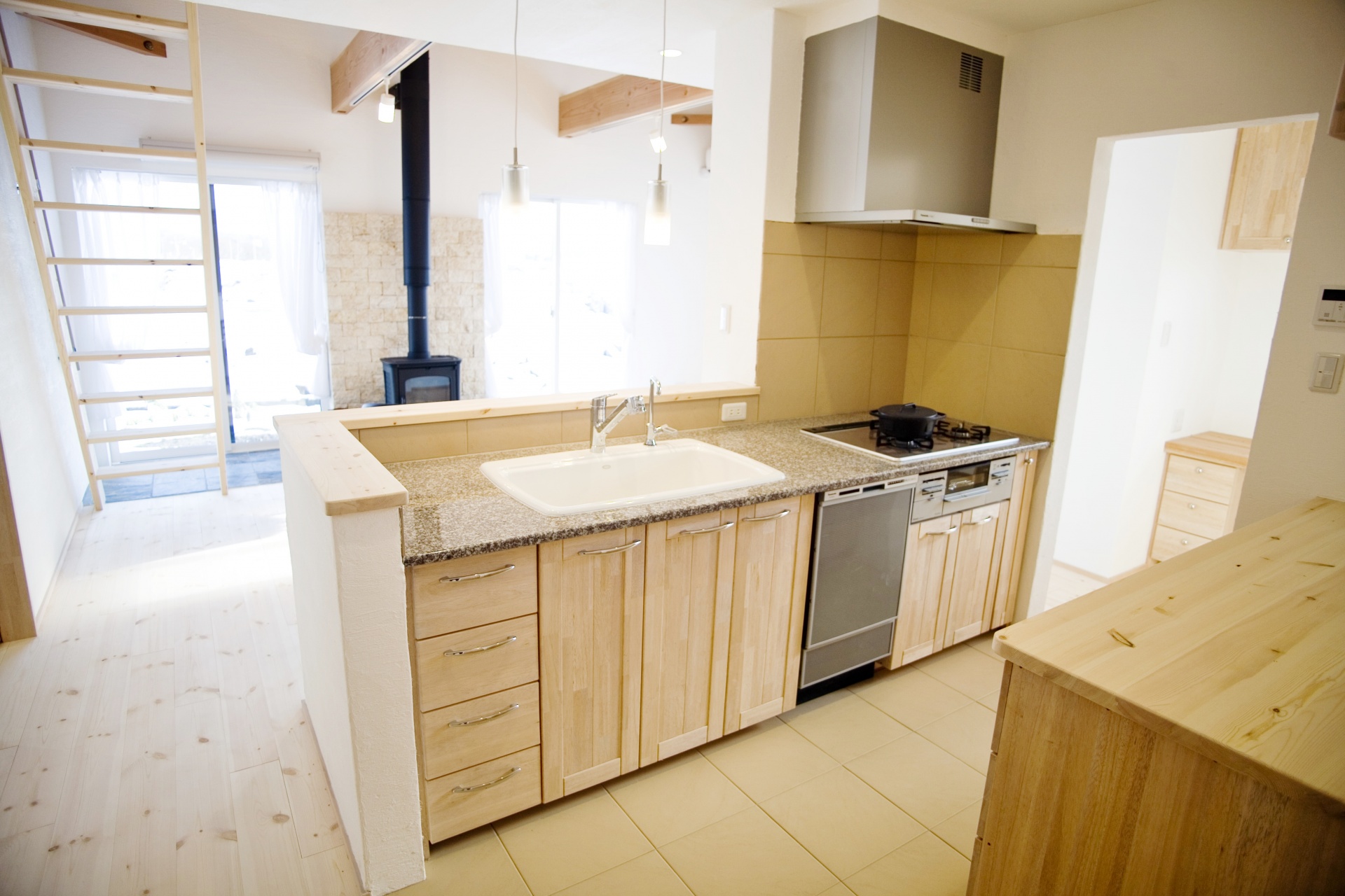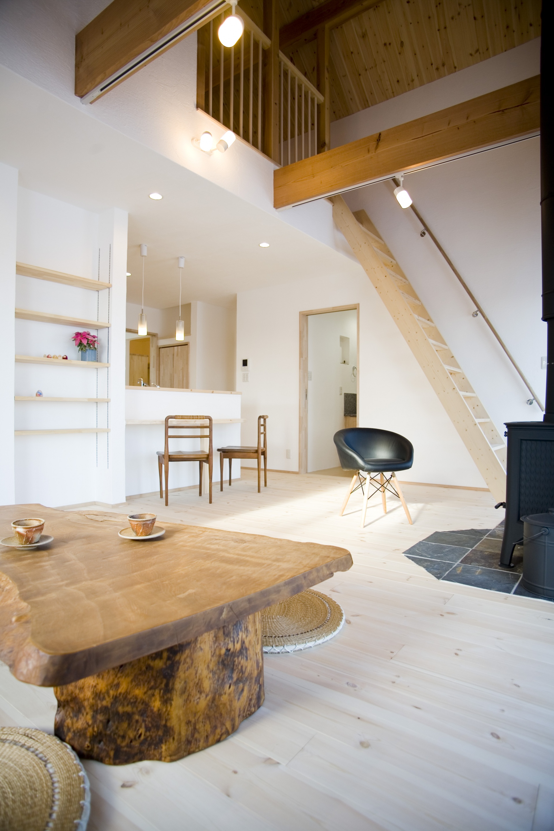 新しい二世帯住宅のかたちを実現したS様ファミリー。薪ストーブが岩手の冬もほっこり暖かく包んでくれるお住まい。