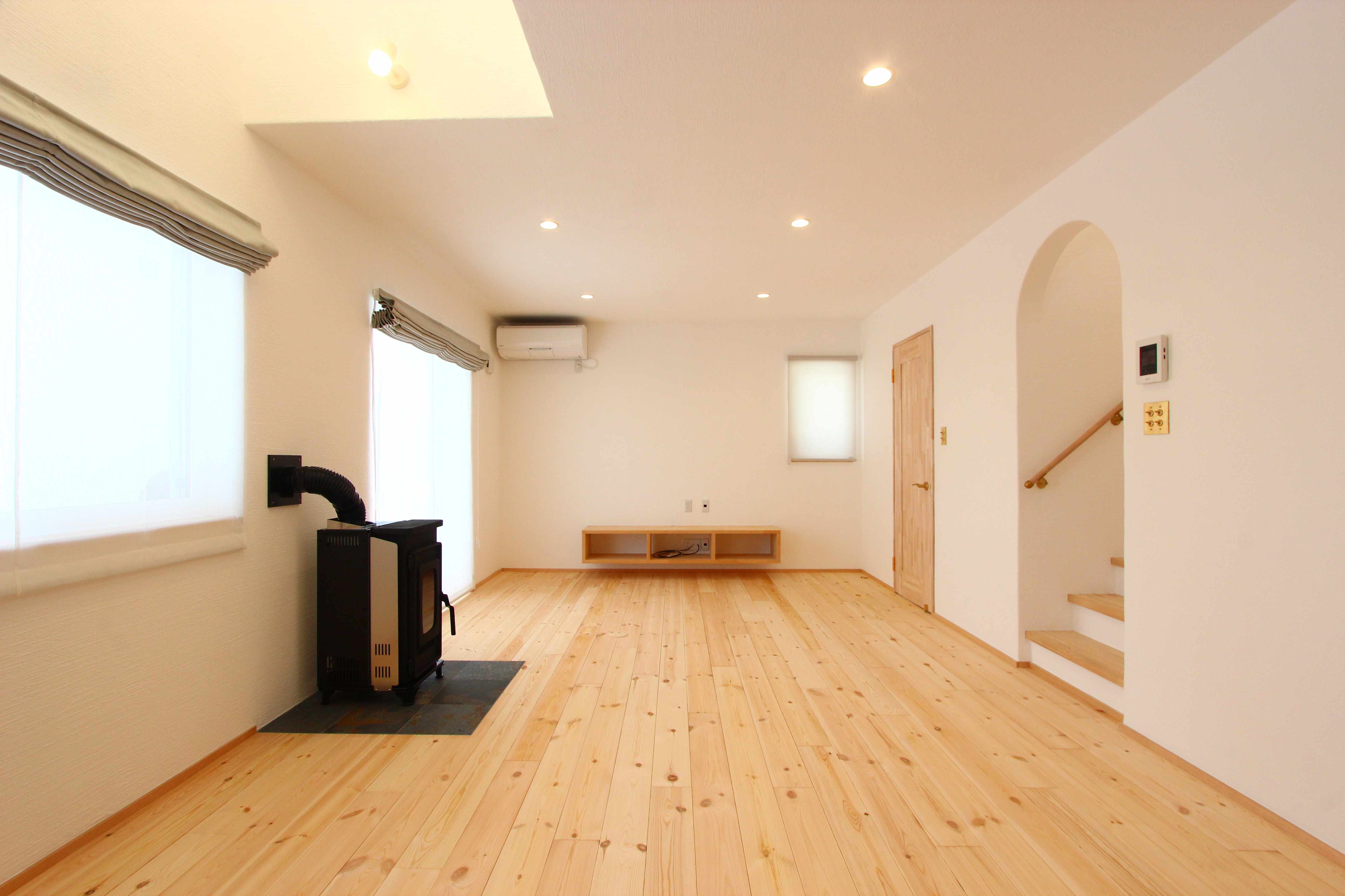 LDKにはペレットストーブが寒さの厳しい岩手の冬を暖めてくれます。