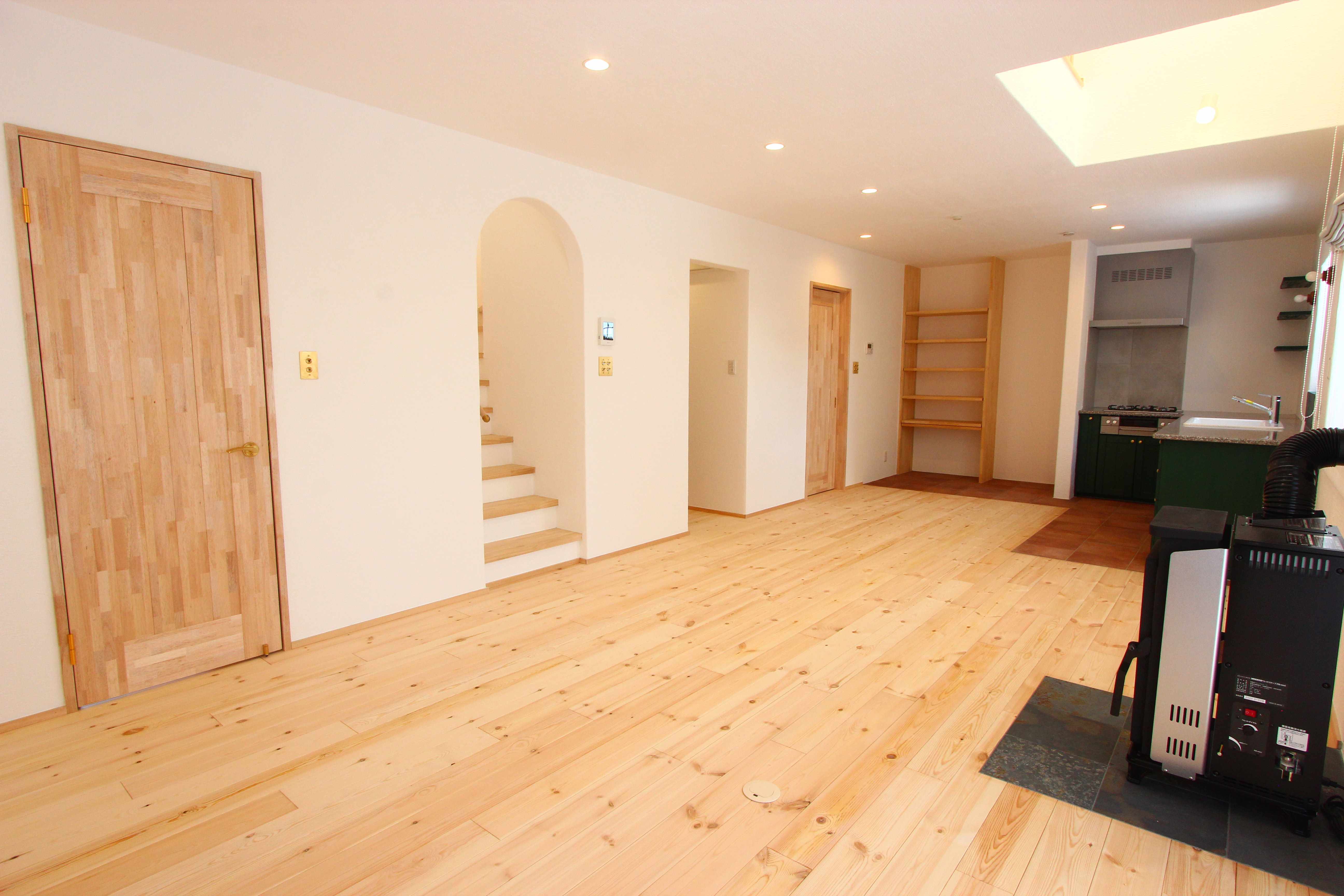 漆喰壁の白がさらに部屋を明るくしてくれます。