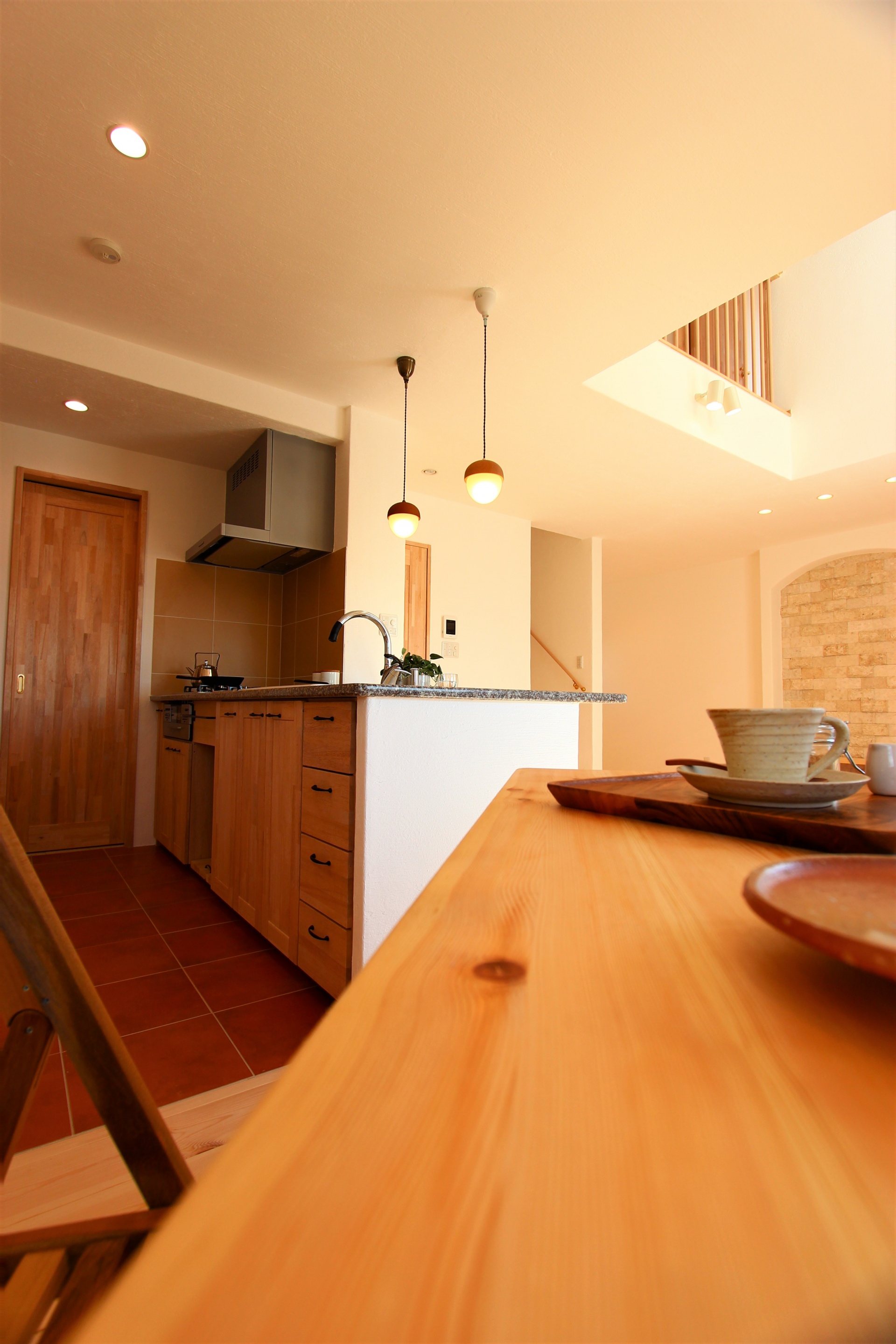 玄関からキッチンへつながる入り口を設置し、