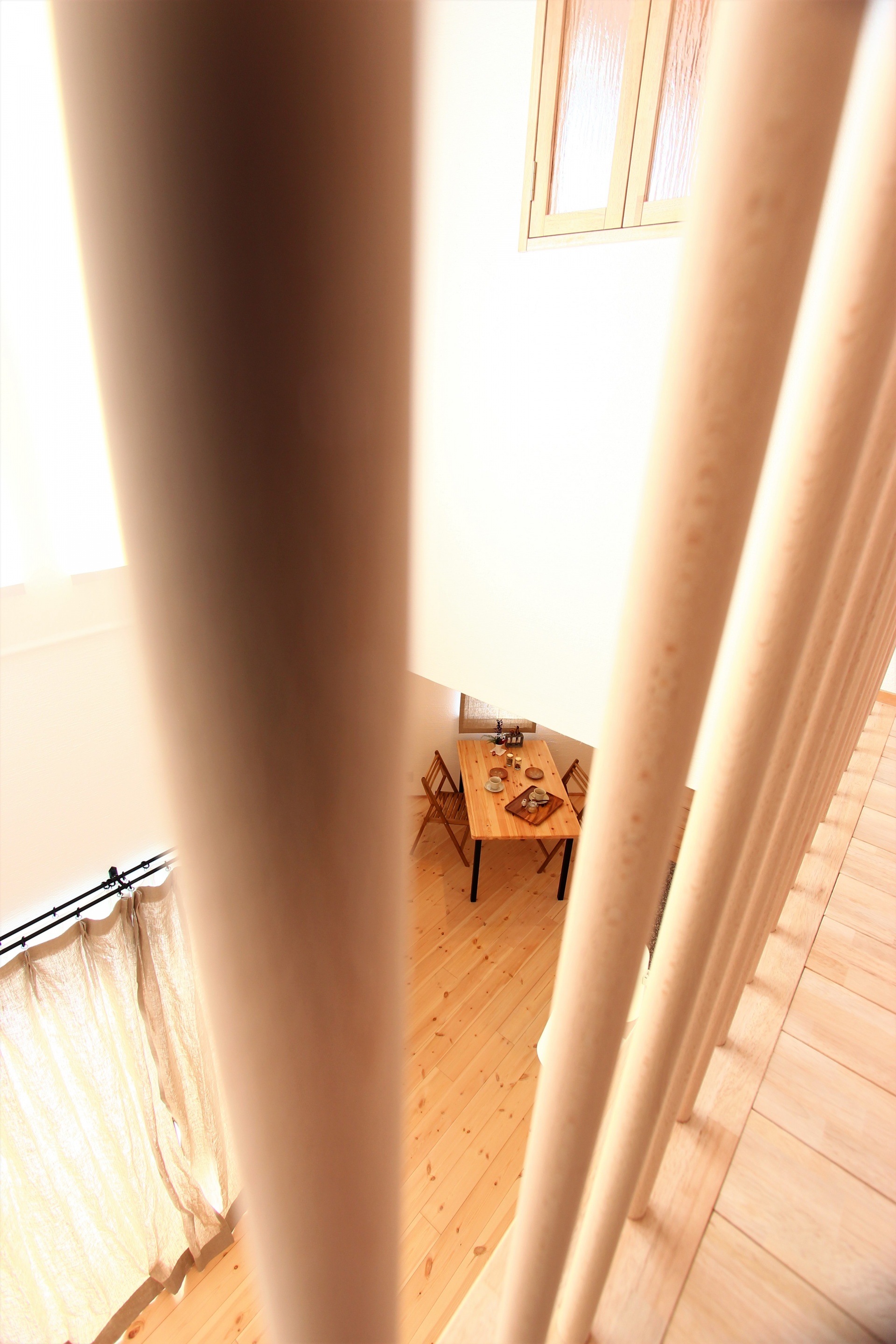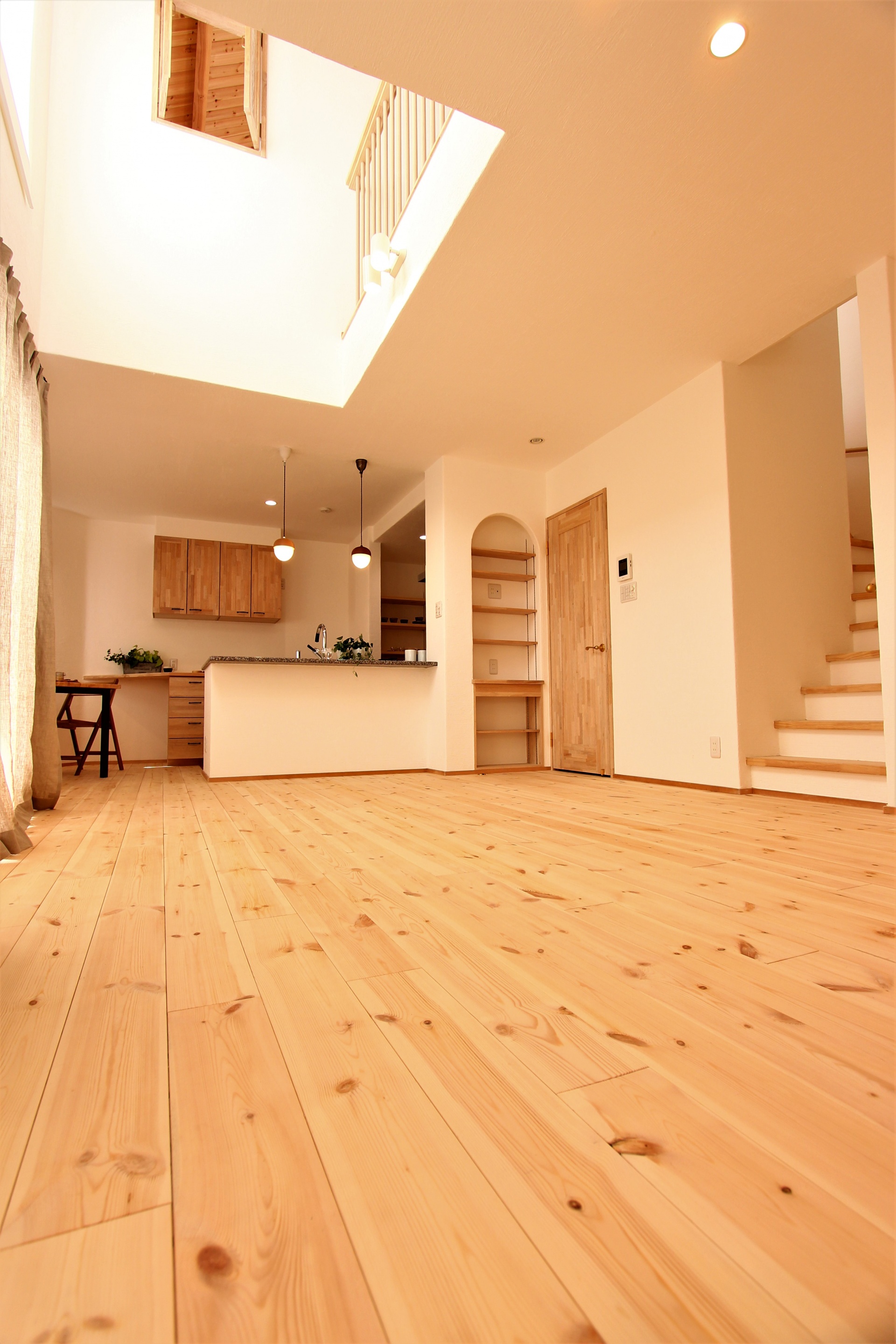 リビング上部の吹抜けからは燦燦と