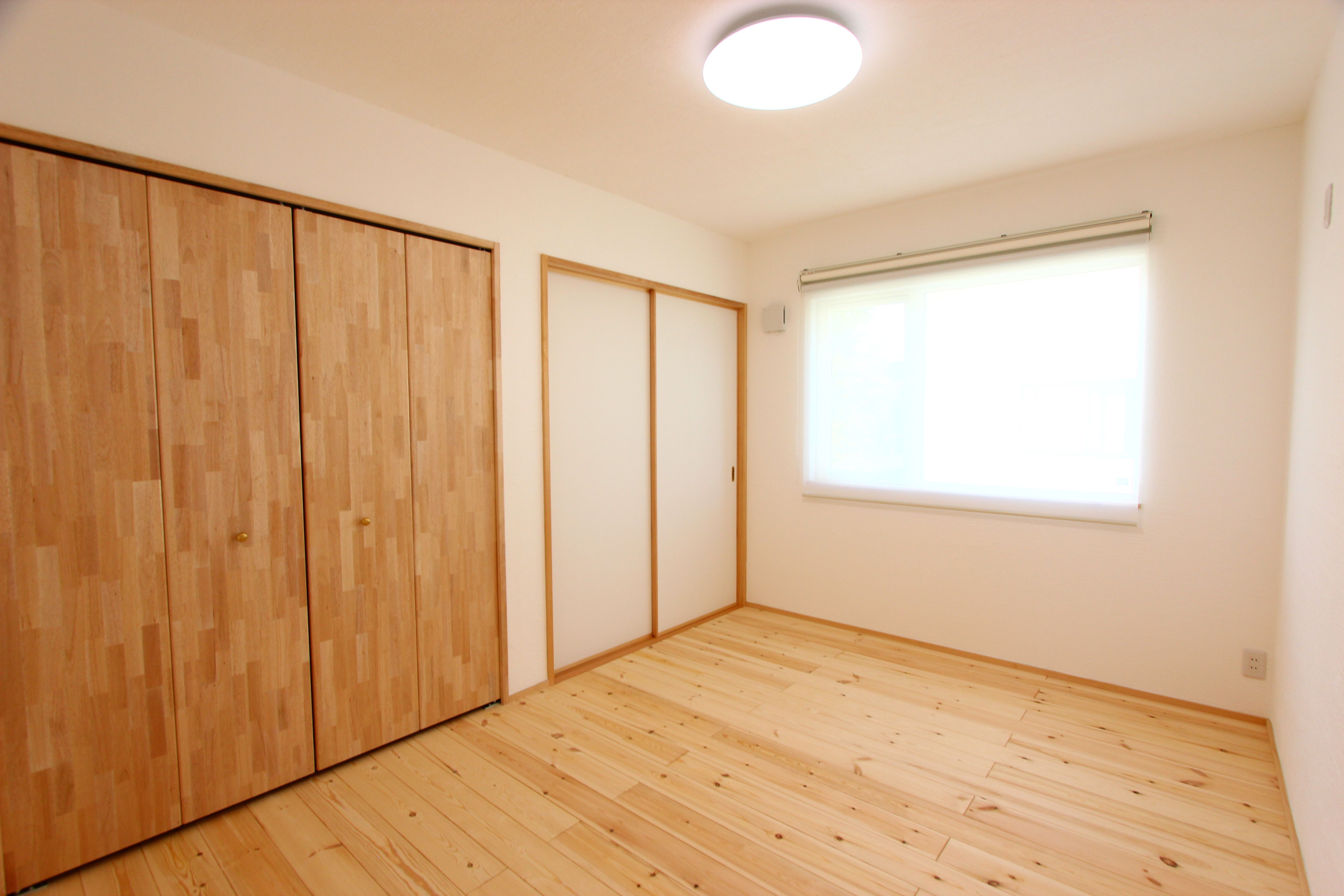 お部屋には収納をたくさん設けました。布団のほか、こまごました日用品などの買い置きなど、しっかり収納できます。