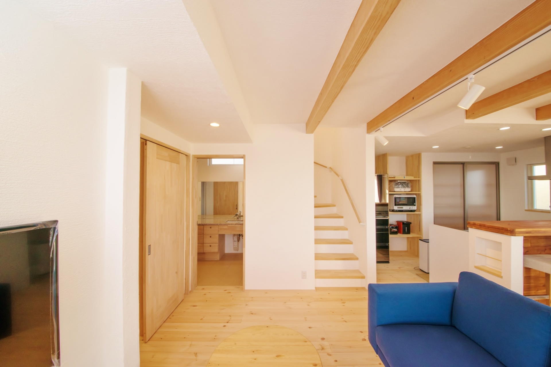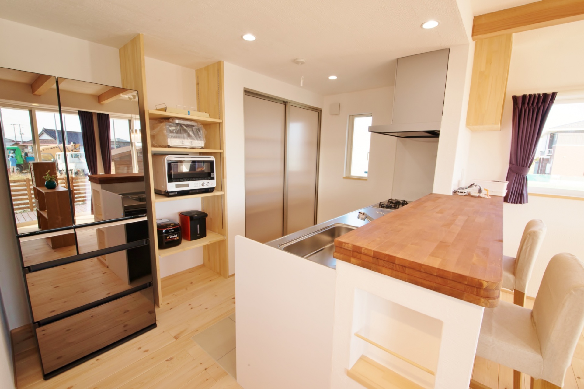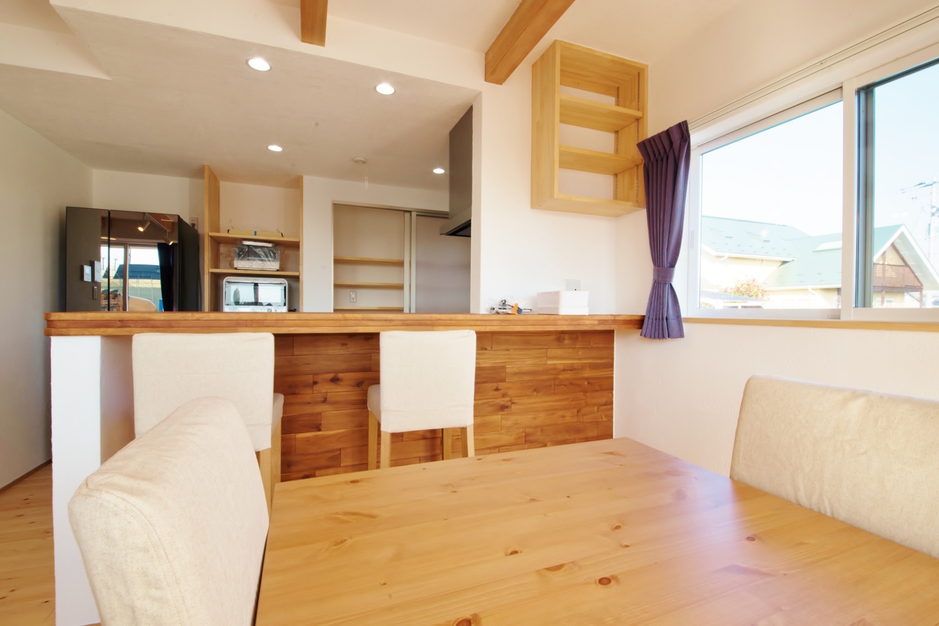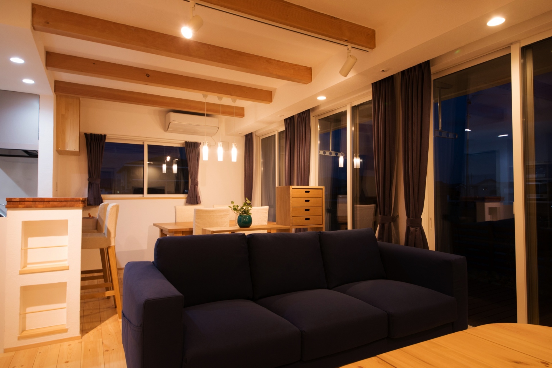 一覧 < new back > 奥州市 K様邸 都会的でスタイリッシュなフォルムが特徴で今までとは印象の違う無添加住宅へ。 K様邸は四角いフォルムが都会的な印象です。内部も、天然素材を生かしながらもスタイリシュな空間に仕上がっています。 夜になって照明を灯すと、ぐっとムードが上がります。ダウンライトやスポットライトで間接的に空間に彩りが生まれます。夜を過ごすのに必要な照度は取りつつも、ゆったりと落ち着いた時間を過ごせる明るさを取っています。漆喰の白壁には印影を作り、輝きを映し出します。 Gallery 一覧 < new back > CATEGORY 平屋 外観 エントランス 玄関 シューズクローク リビング ダイニング キッチン 和室 洗面脱衣室 在来浴室 サンルーム トイレ 吹抜け 階段 ファミリーホール 主寝室 子供室、洋室、書斎 ロフト、小屋裏収納 ウォークインクローゼット、納戸 パントリー