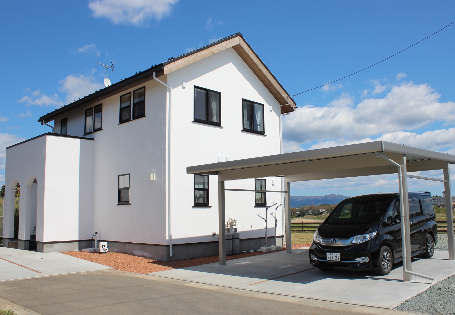 奥州市胆沢の田園風景に溶けこむ漆喰壁がとてもマッチした住宅へ。