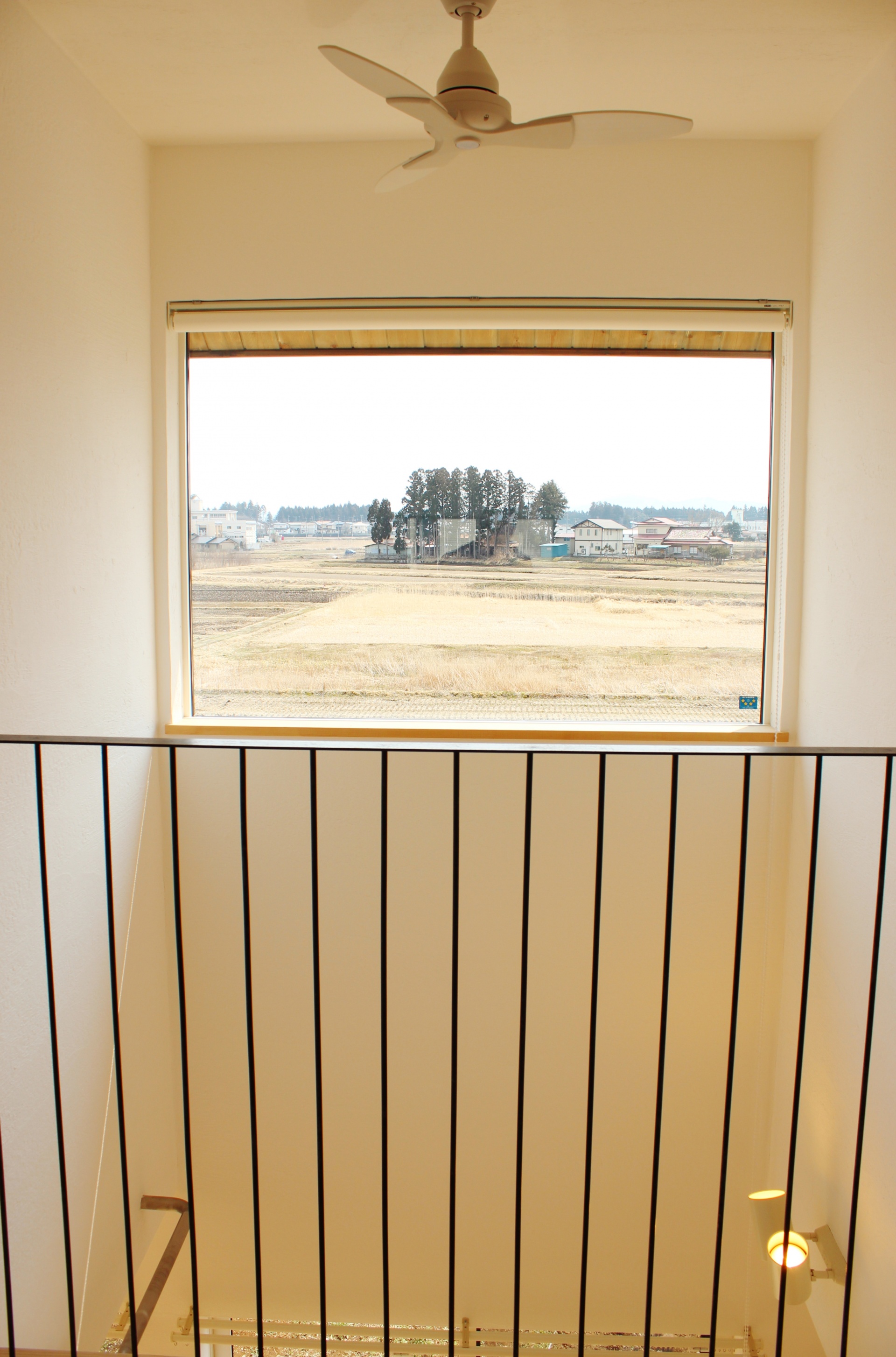 静かな田園の風景を一望するT様邸。実は、お隣は同じ無添加住宅のS様邸です。田舎の田園風景がとても似合う真っ白なおうち。