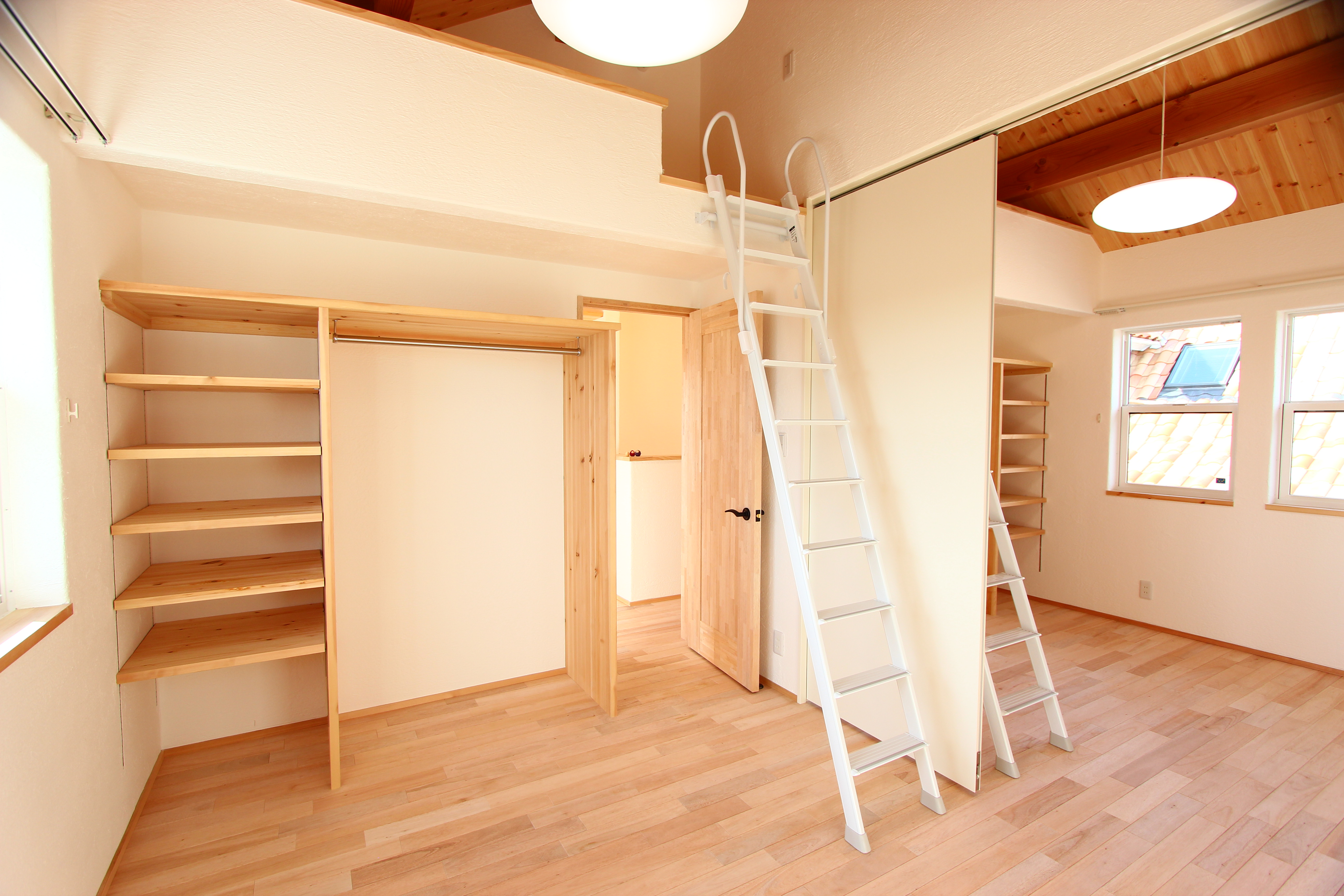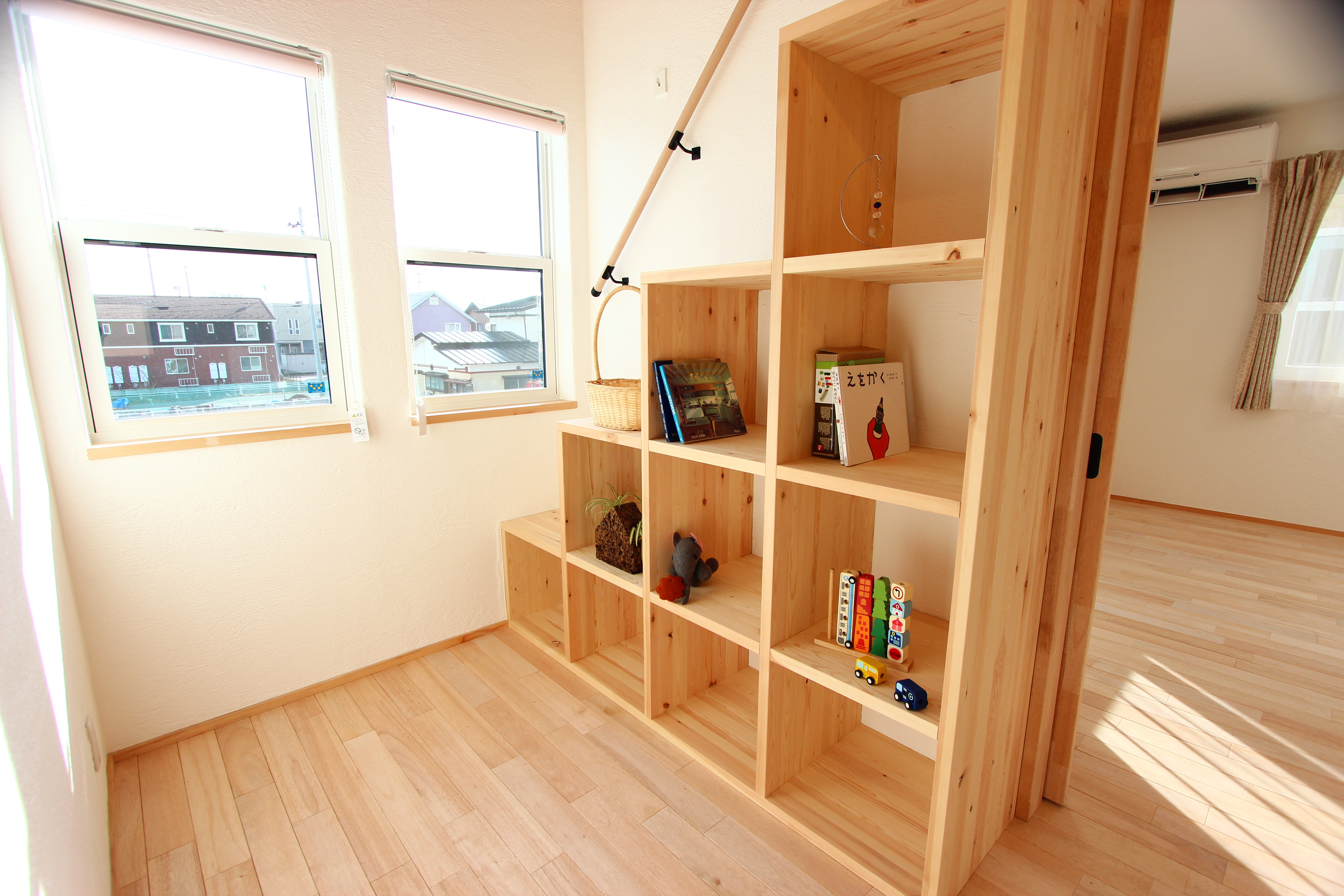 二階の子供部屋は、いつでも仕切れるパネルを採用。