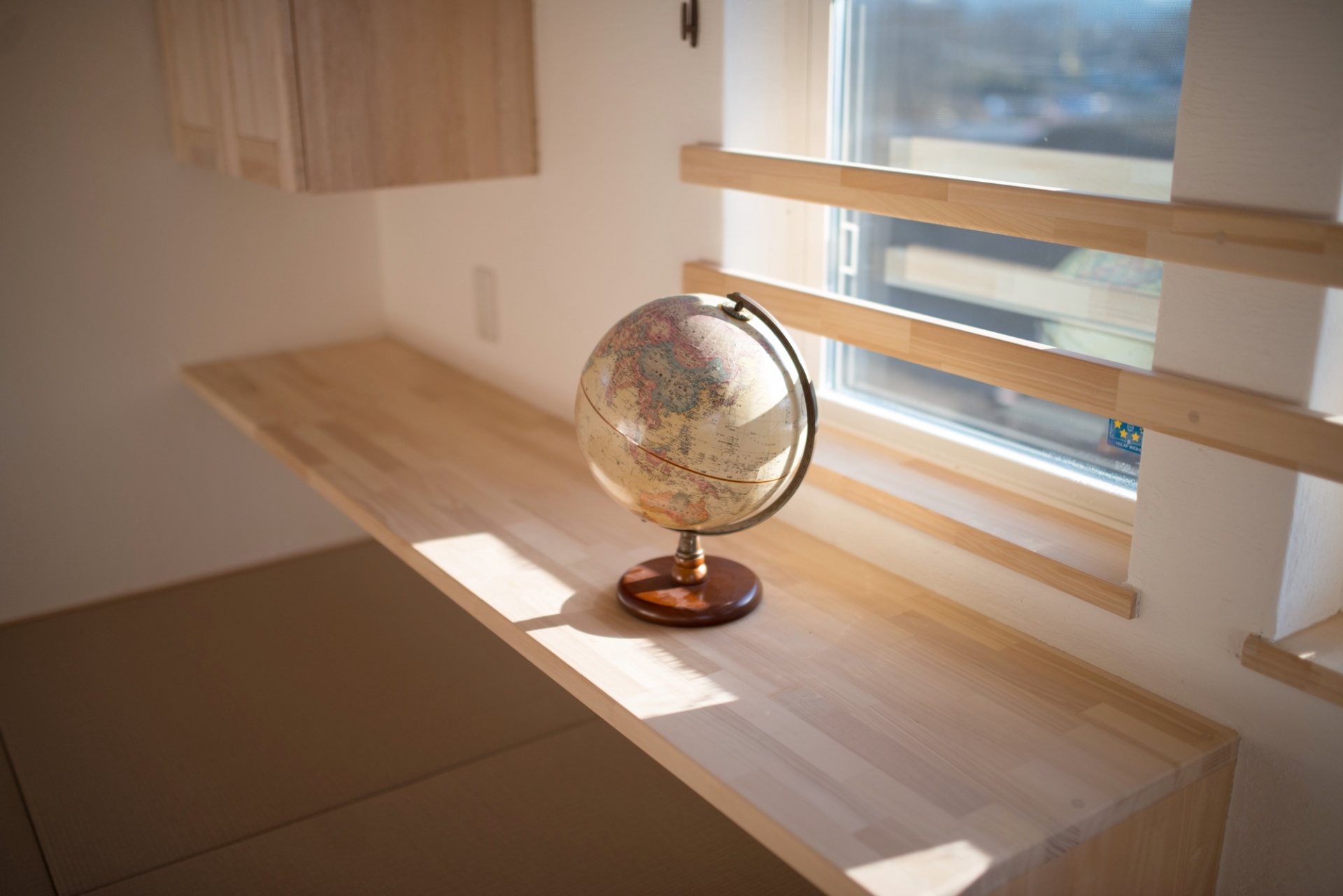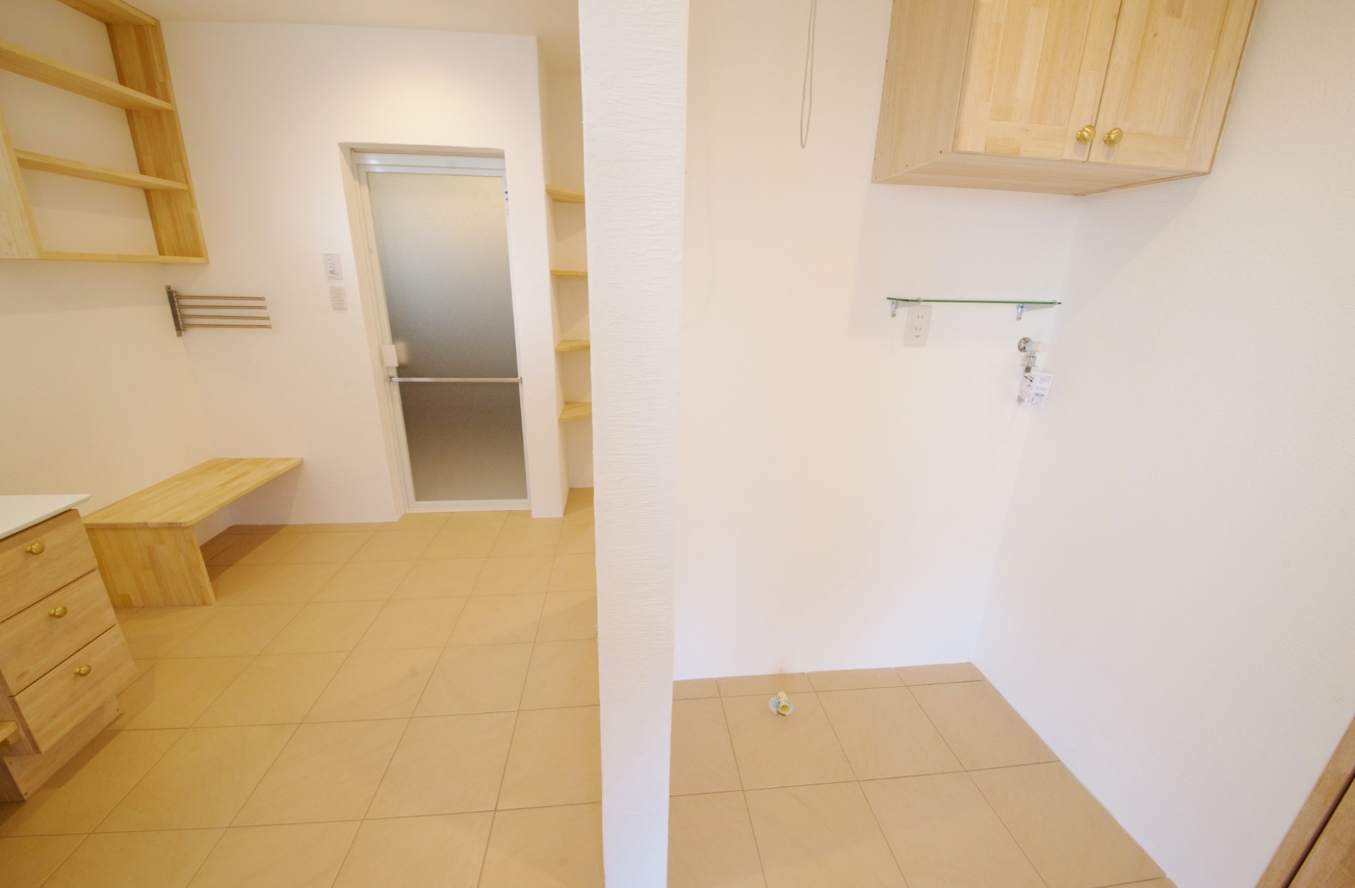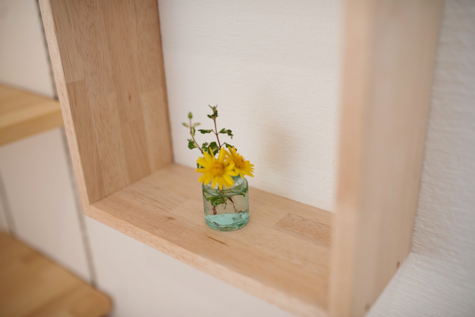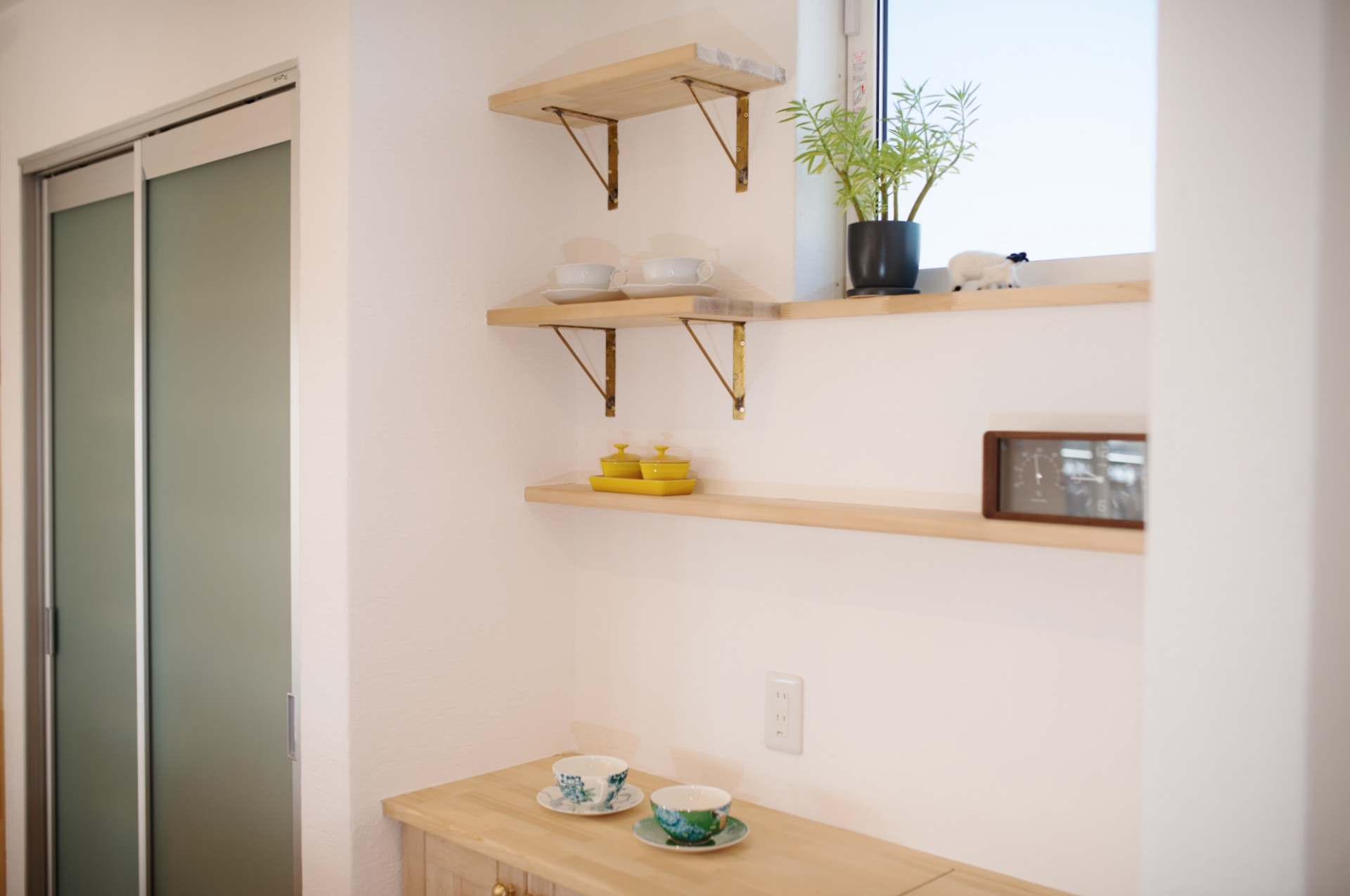 建物中央に位置する、二階へ続く木製手摺が美しい階段は、一階へ光や風運びます。明るく優しい日差しの中を抜けるとそこは家族の集まる賑やかなリビングへ続きます。