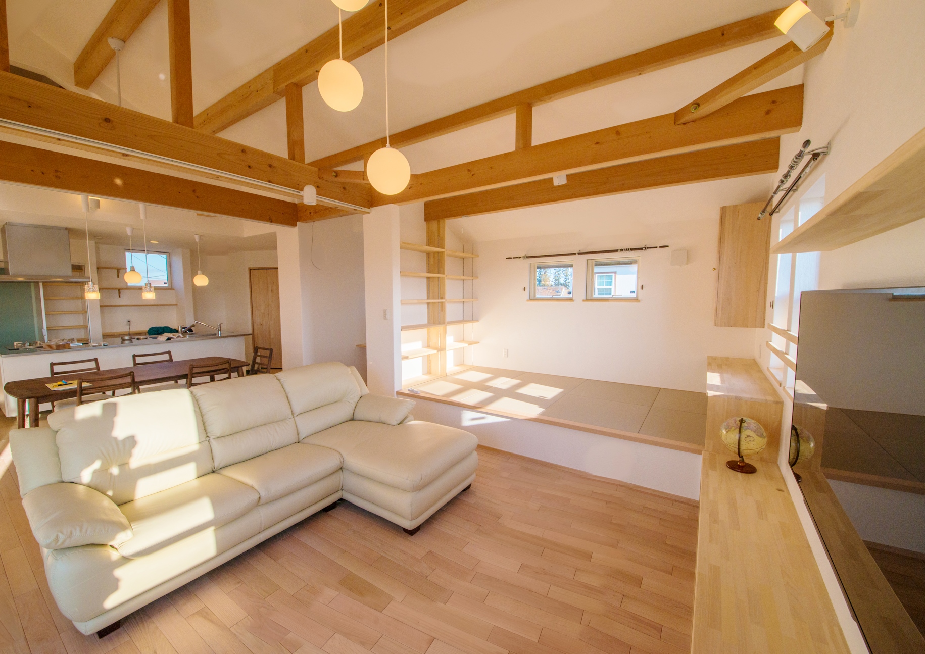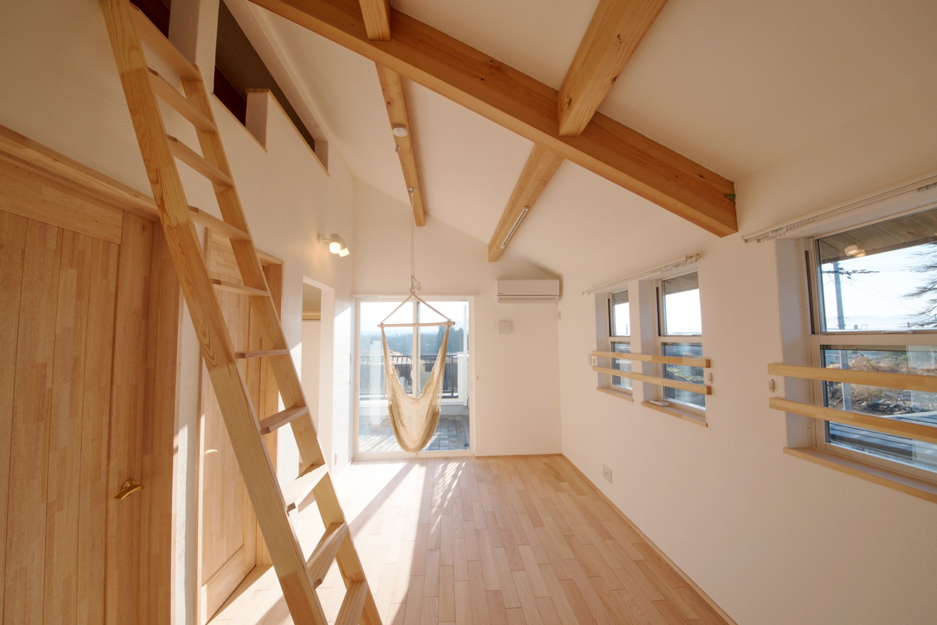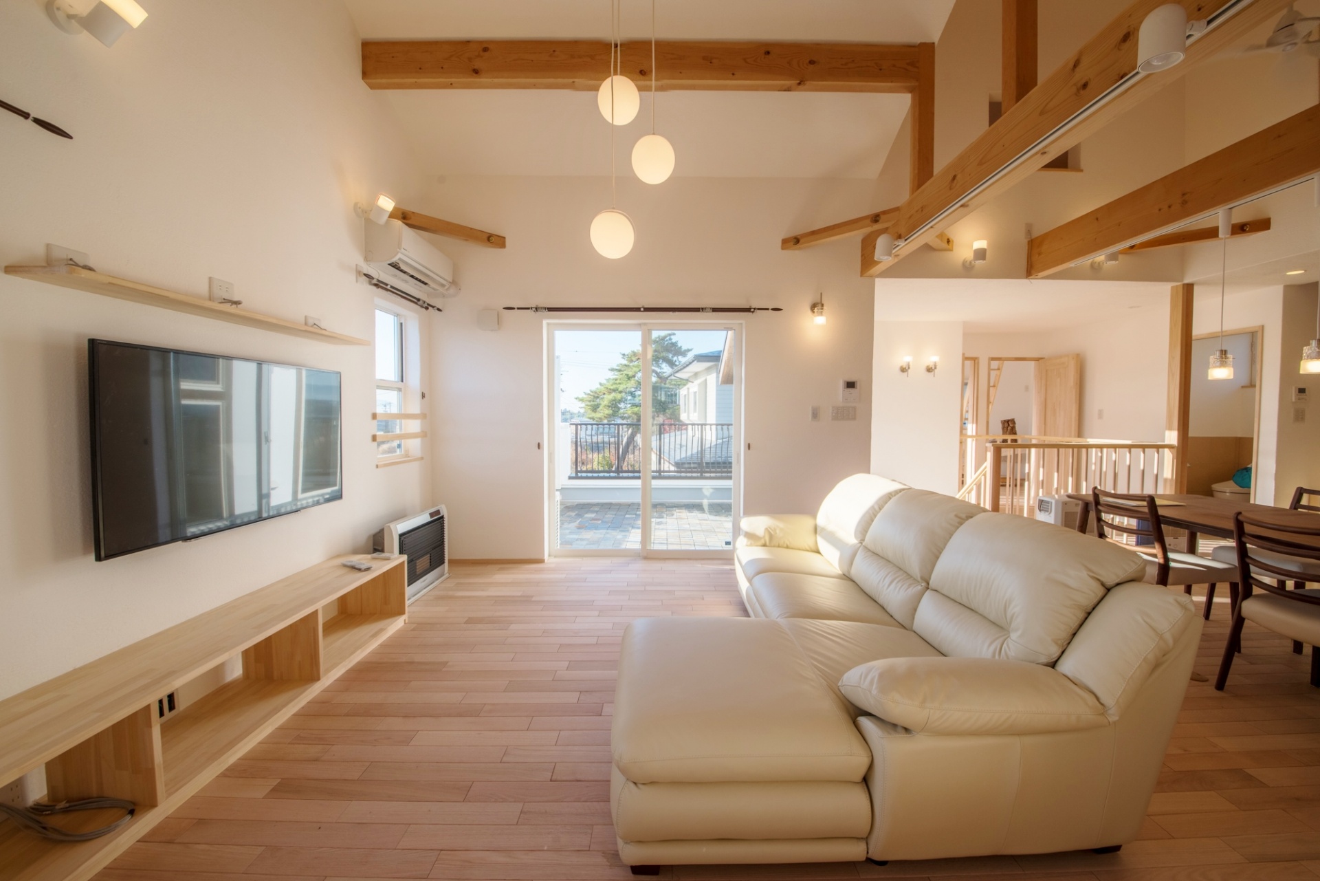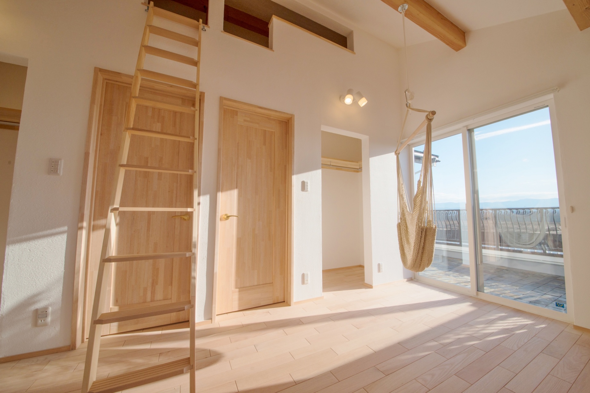 家族はもちろん、ご友人を招いてのホームパーティーなど、U様にとって周囲を楽しませることも家づくりの中で大切なポイントでした。二階リビングからベランダへ出ると、そこはまさにアウトドアリビング。
