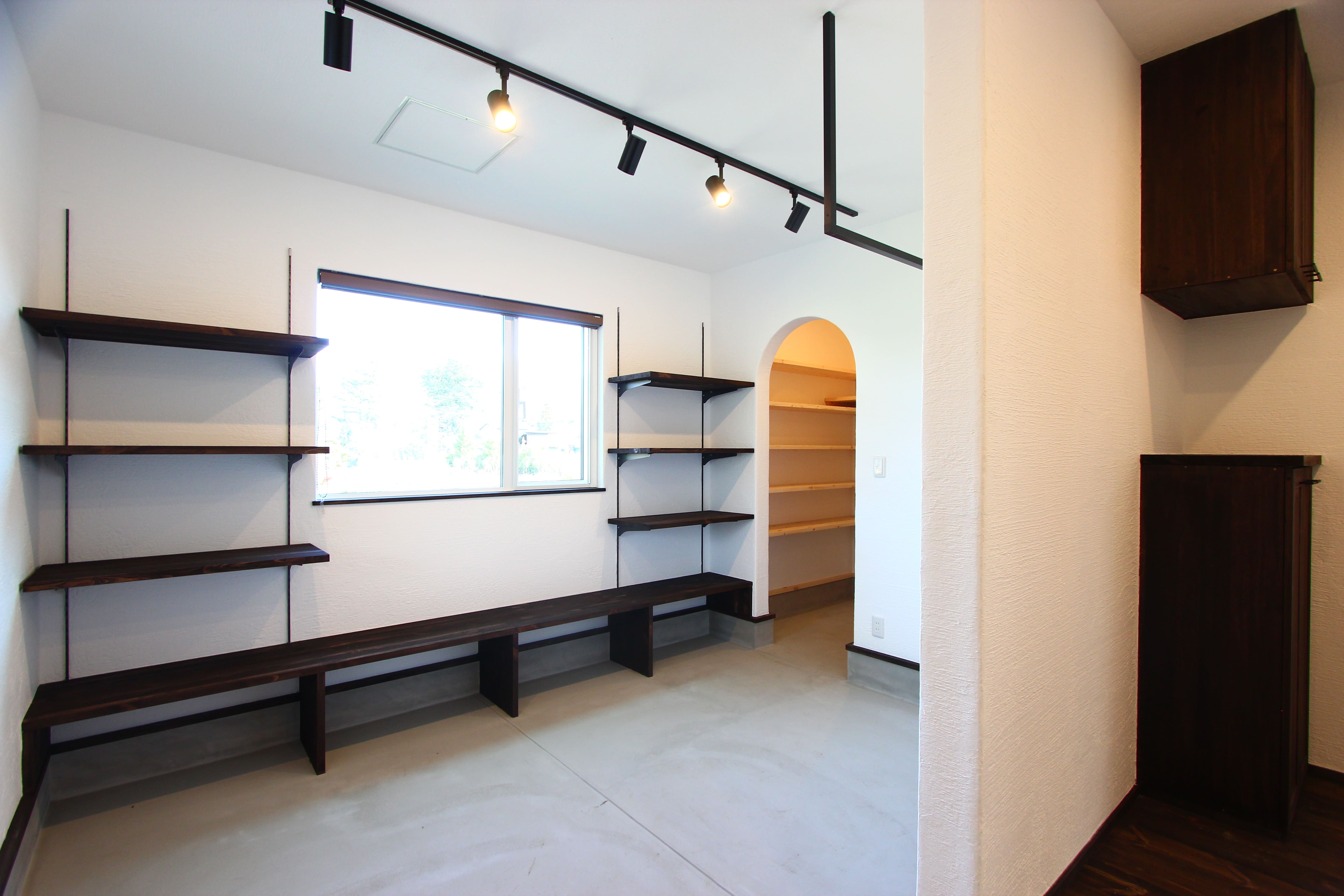 玄関を入ると、7.5帖の土間収納、2帖のシューズクローク。
