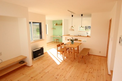 無垢の床材が素足に心地よく、毎日の家族の会話が弾むあたたかな空間。