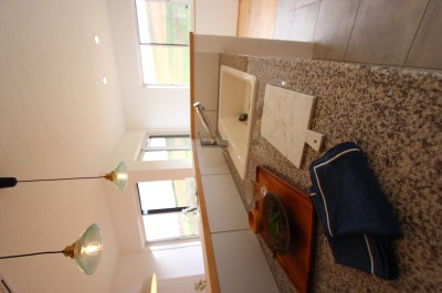 標準仕様の御影石のキッチン天板で高級感アップ!お手入れも簡単です♩