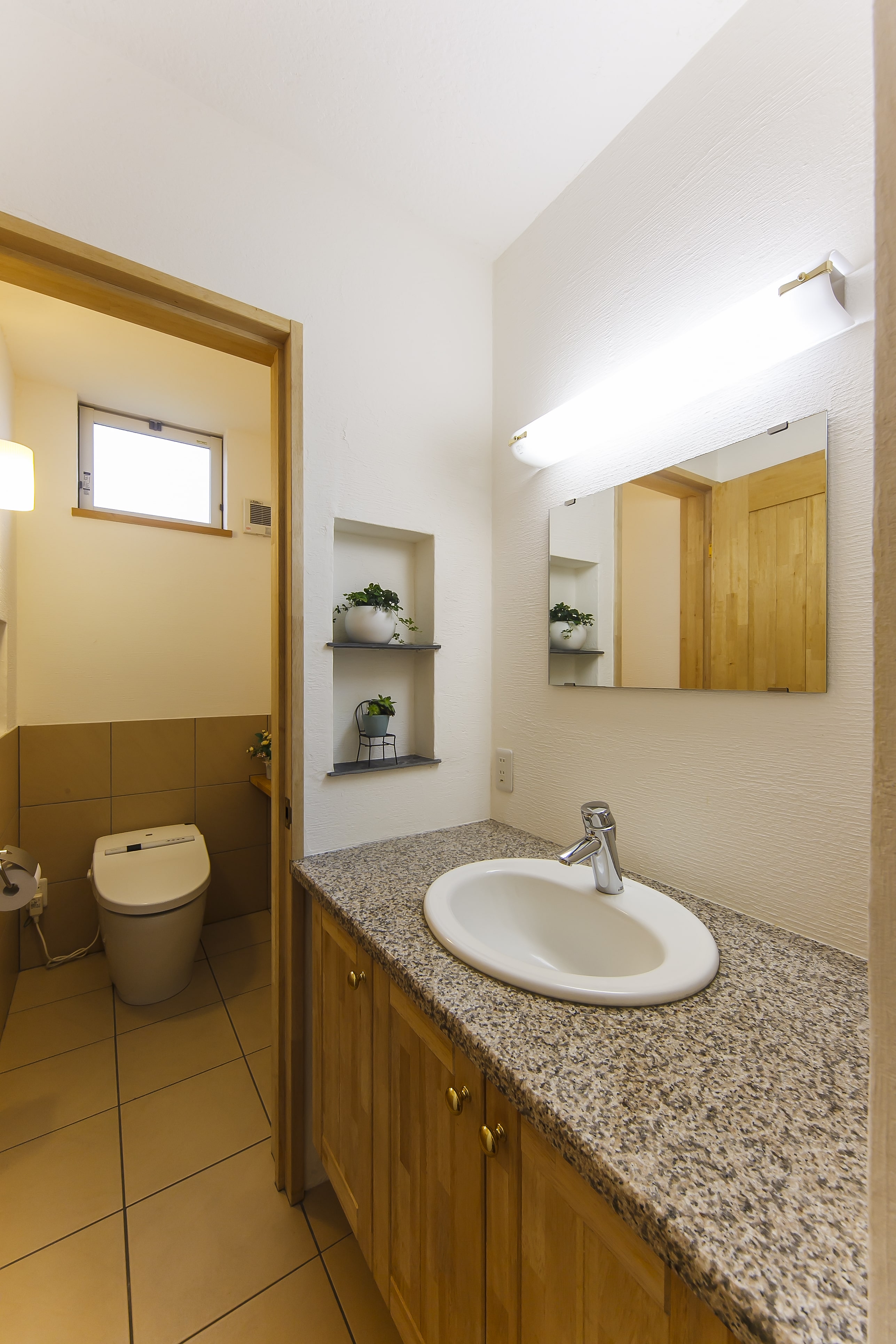 F様、O様邸は完全分離型二世帯住宅という、居住空間の全てを分ける形態の二世帯住宅です。ただし、二つの扉から別々に入る玄関も、内部では行き来できるよう扉が設けられ、若いご夫婦やお孫さんがご両親世帯に気軽に遊びに行けるようになっています。