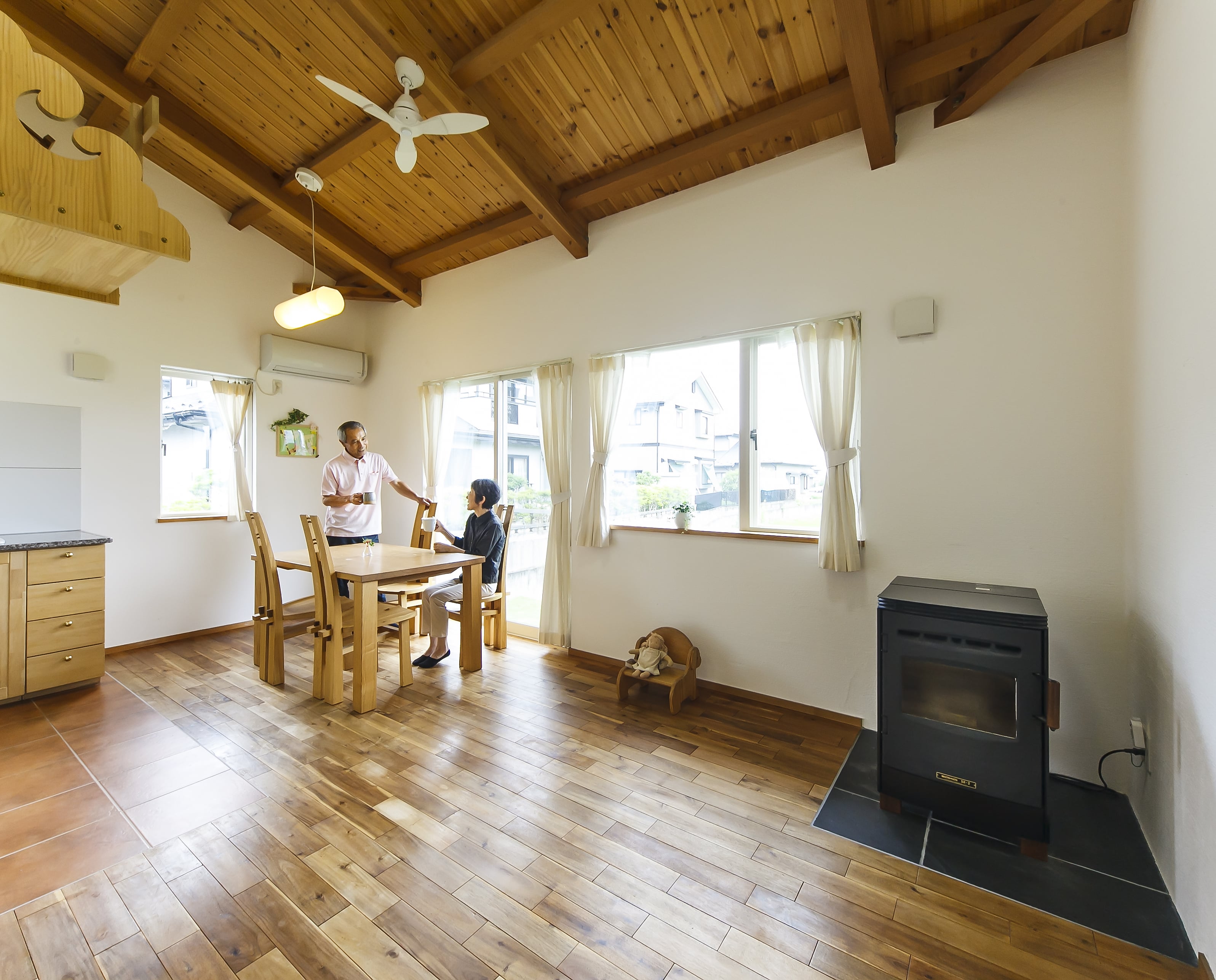 住宅街の中に、ぽっかりと田んぼが顔をのぞかせる一角に、F様、O様のお宅はあります。南面が田んぼで、視界が開けている立地のため背後の住宅地からは一線を画した風景を眺める事が出来ます。