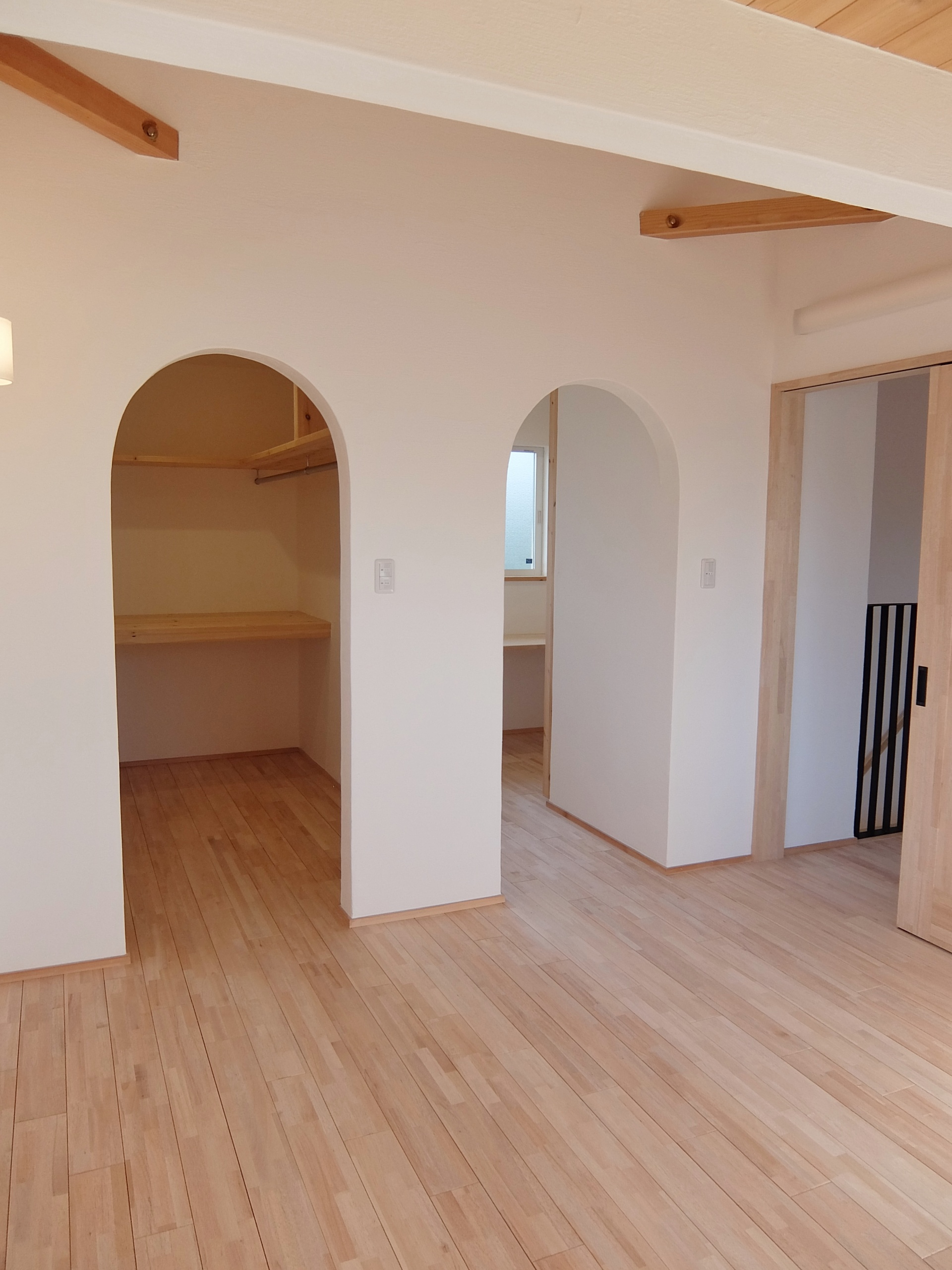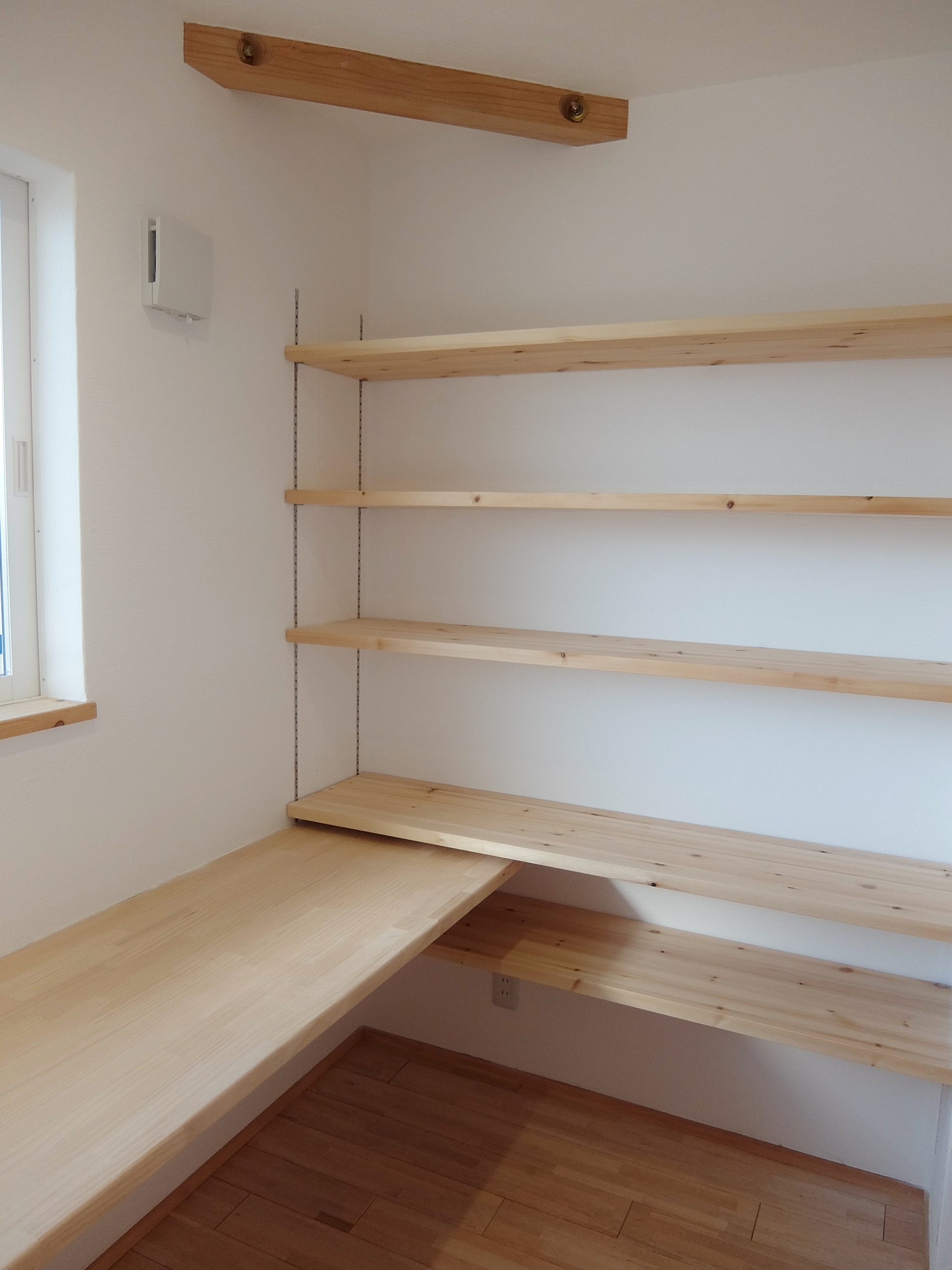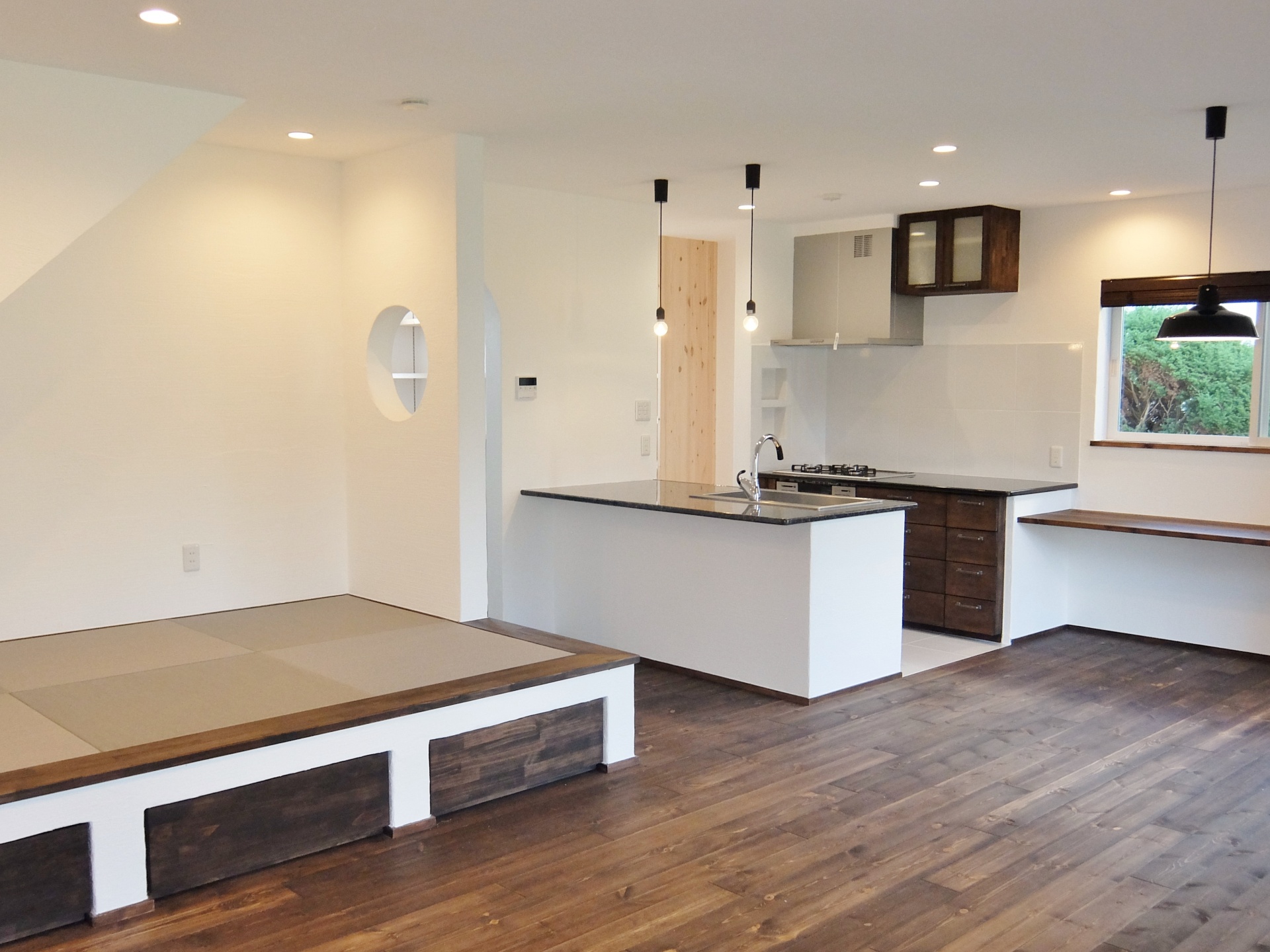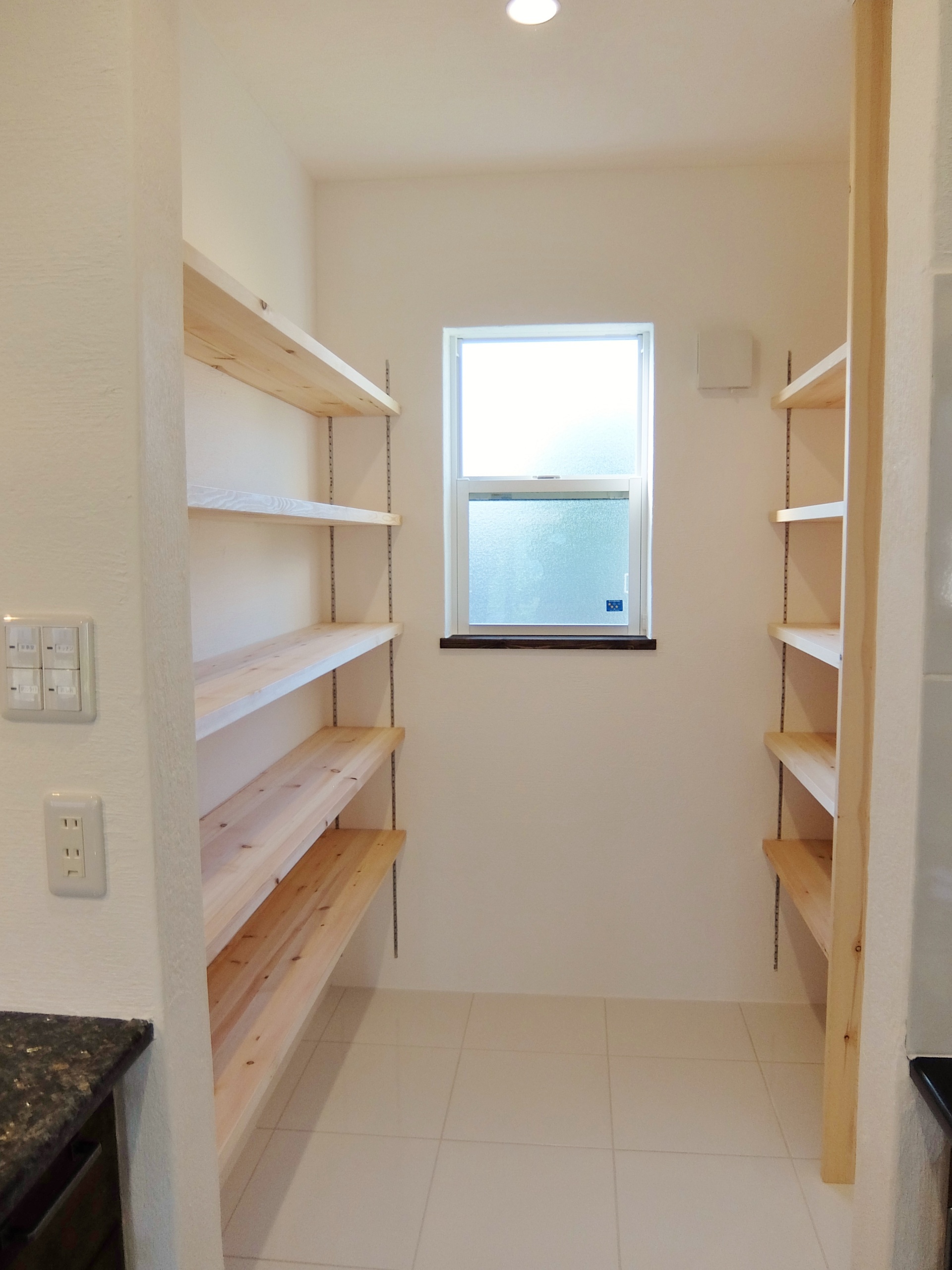 流行の塩系インテリアですが、「物を置かない」「色味を抑える」ために、生活感を極力見せない収納が重要!小上りの畳コーナーの下は引出し式の大型収納になっています。