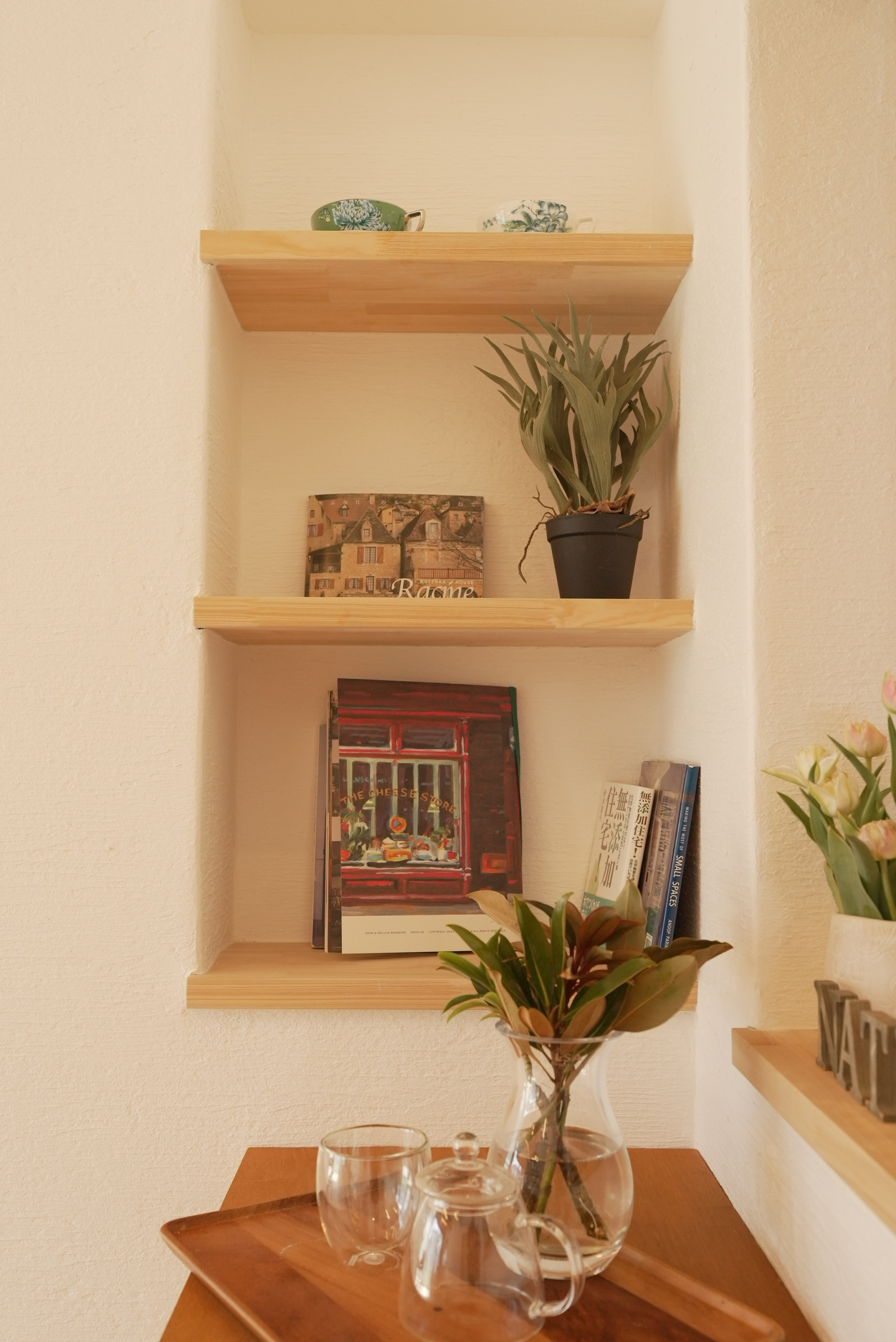 リビングにニッチがあると、書類を置いたり写真を飾ったりできます。