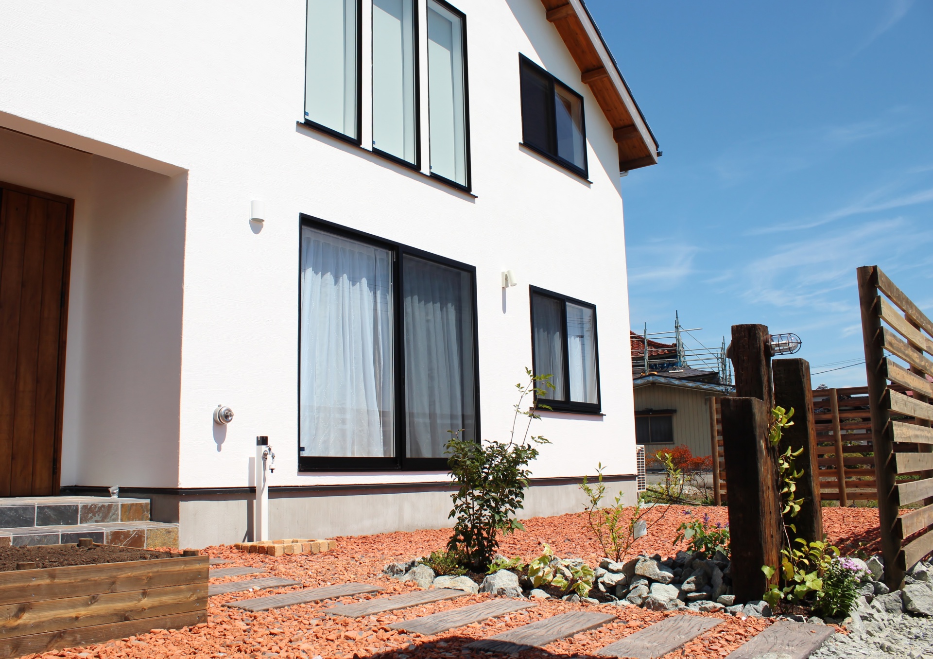 周りの風景に溶け込むナチュラルなお庭に植物が育っていくように、ご家族の暮らしにも彩りが加わっていきます。この家の特徴である大きな屋根は、安心と安全の象徴としてこの家に暮らすM様ファミリーを末永く包み込んでくれることでしょう。