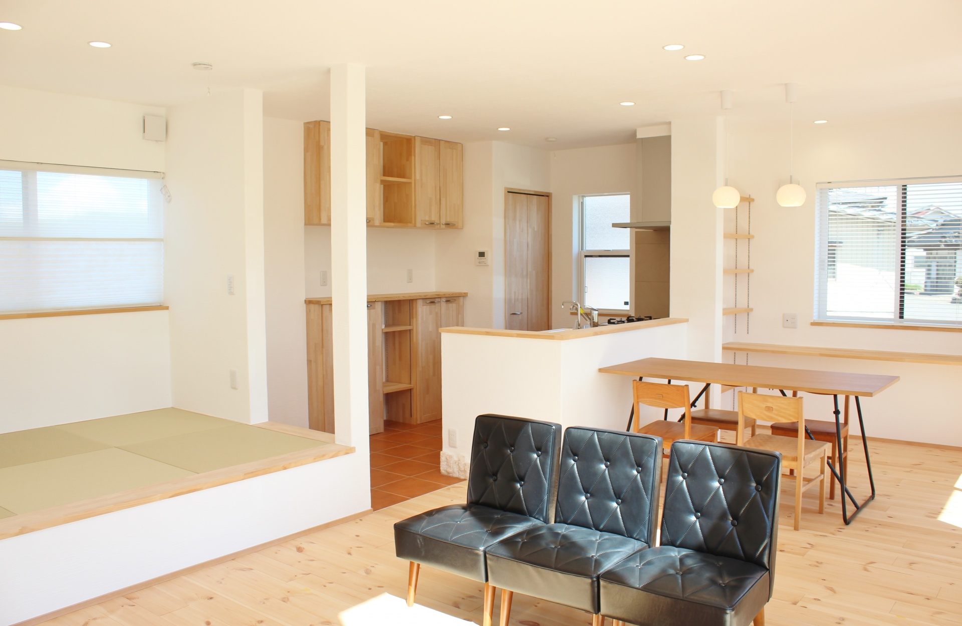 小上がりの畳コーナーや、畳コーナー下の大容量の収納スペース、ランドリースペースなど、魅力的な間取りが自慢のお住まいです。