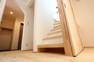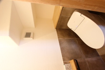 1階のトイレは階段の下を利用しました。漆喰なので、消臭効果は抜群です。