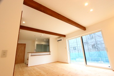 化粧梁がかっこいいリビングは、南面の大きな窓からの光がたくさん。