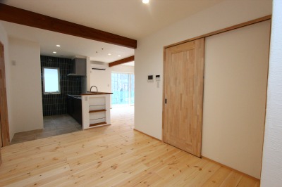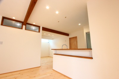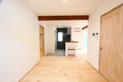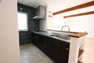 キッチンからも、玄関に向かうことができるぐるぐる動線は奥様のアイディアです。