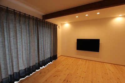 カーテンもお洒落に。夜の落ち着いた空間を演出します。