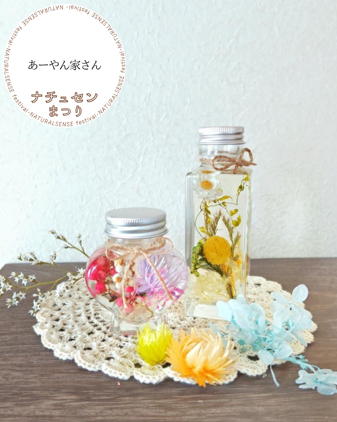ハーバリウムやレジンアクセサリーなど、ドライフラワーを使ったワークショップを開催してくれる「あーやん家」さん。