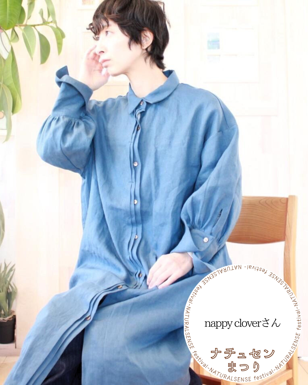 リネンやコットンなど、肌ざわりの良い自然素材を使った洋服やエプロンを、一つひとつ丁寧に手づくりしている「nappy clover」さん。