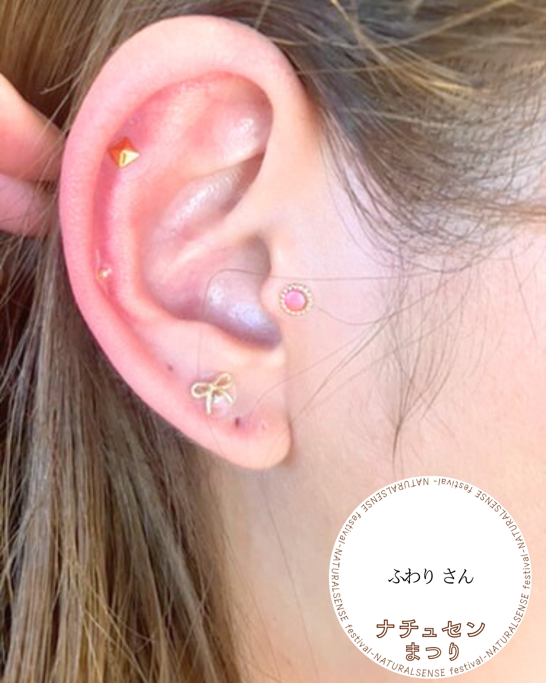 「ふわり」さん、「晴」さんのブースは耳つぼをやさしく刺激しながら、体の不調に合わせたポイントへジュエリーシールをお貼りします。