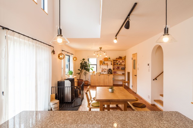 吹き抜けがリビングを明るく照らしてくれます。