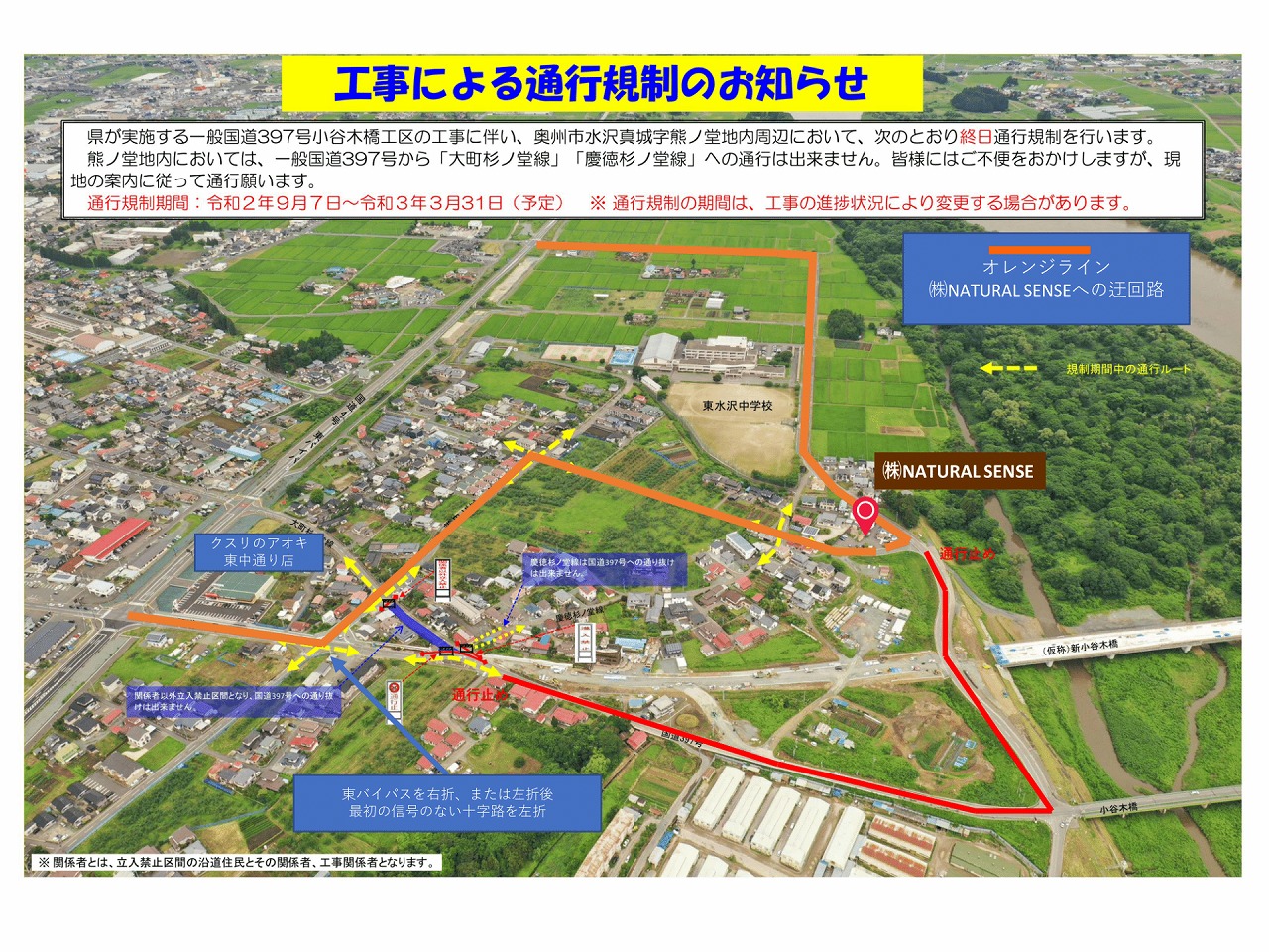 新小八木橋工事に伴う交通規制により、ナチュラルセンスショールームへの順路が分かりにくくなっております。